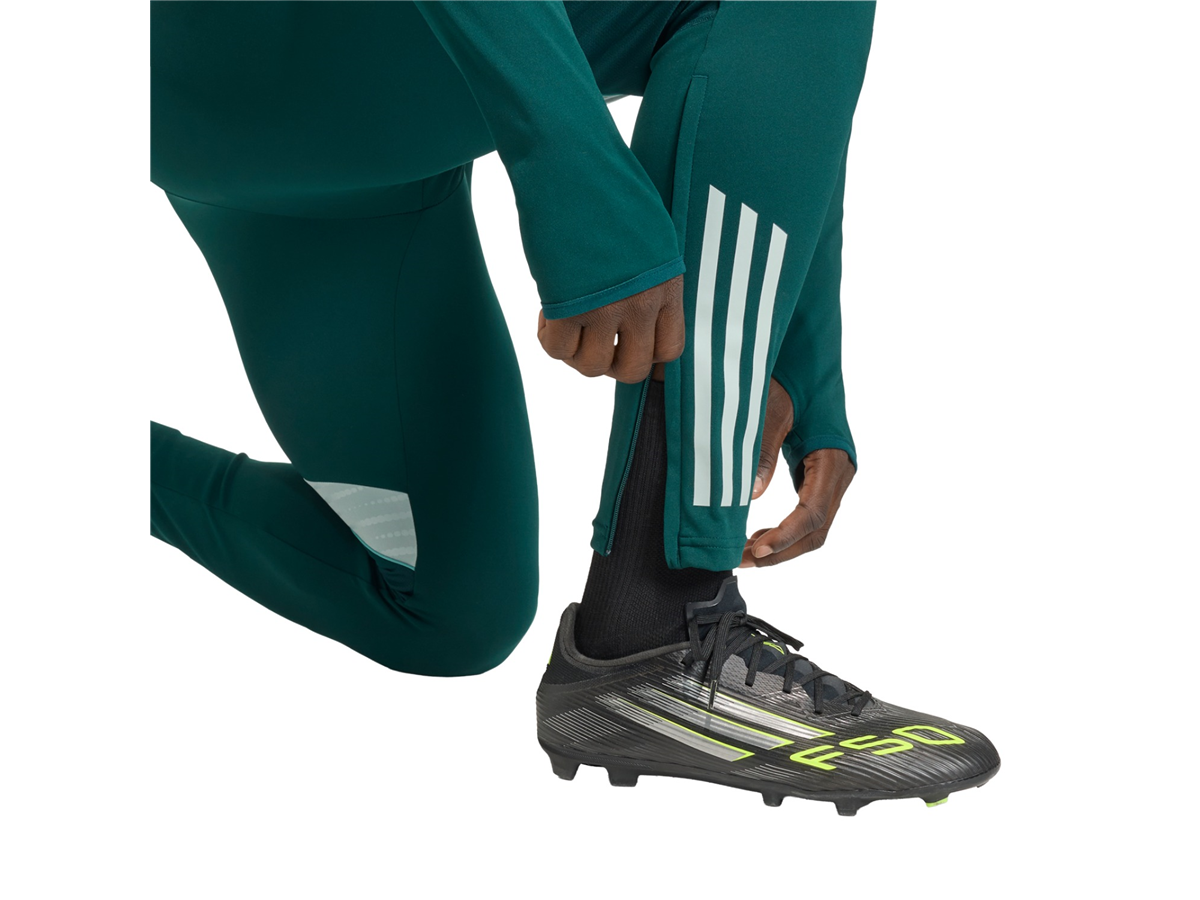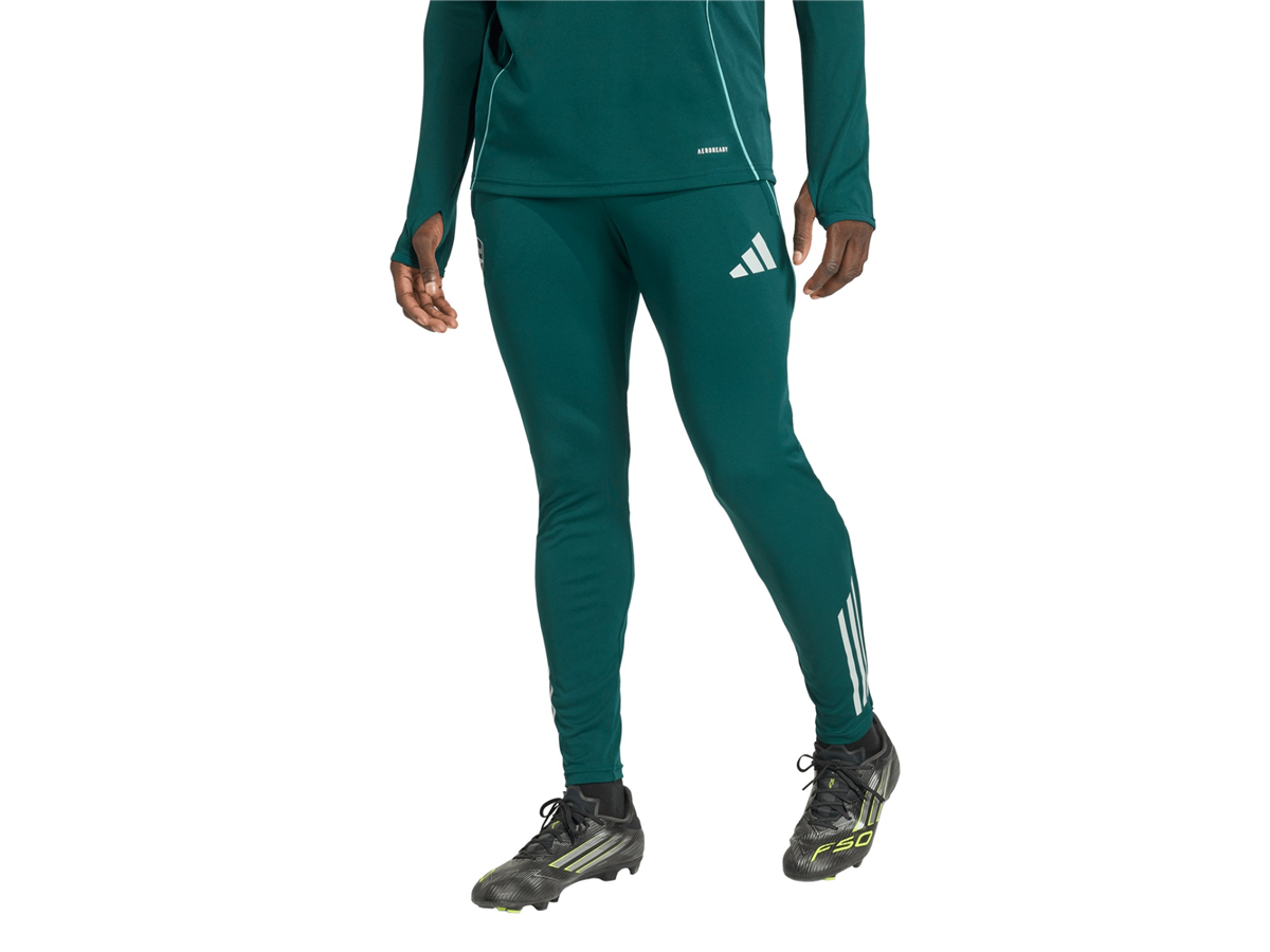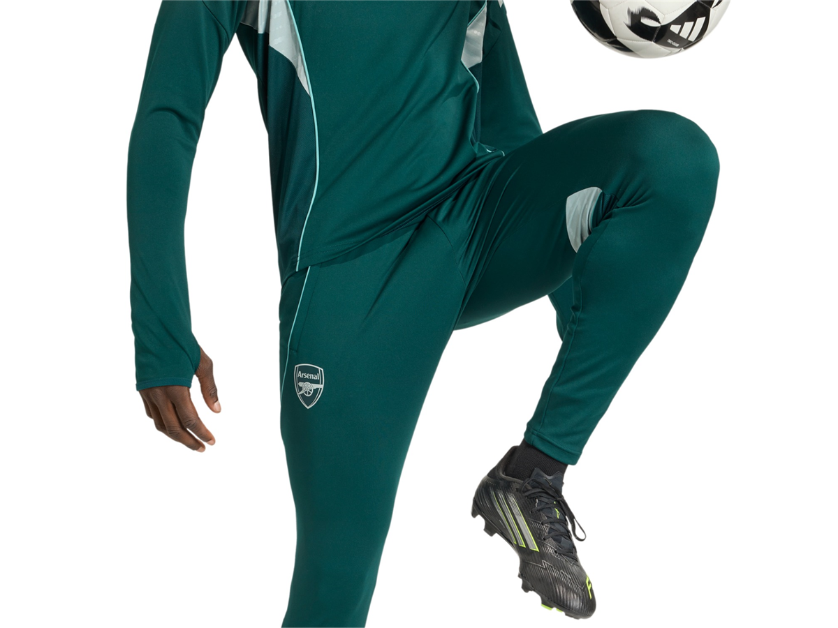 These adidas Arsenal training pants are the ones the players pull on while preparing for league games. Their sleek silhouette ensures they don't slow down sprints or foul footwork and AEROREADY keeps moisture to a minimum. A pair of zip pockets offers storage space for small essentials. On the leg, that heat-applied team badge shows your football passion.