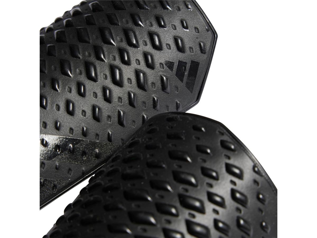 When your sights are set on dominating matches, confidence is key. These adidas football shin guards include hard but flexible shields that deflect contacts and moulded EVA backing that helps absorb the heaviest of impacts. Kept in place with separate retaining sleeves, they include a cluster of embossed High Definition Grip elements on the front for added grip and shock absorption. Made with at least 20% recycled content to avoid the larger environmental impact of producing virgin content.