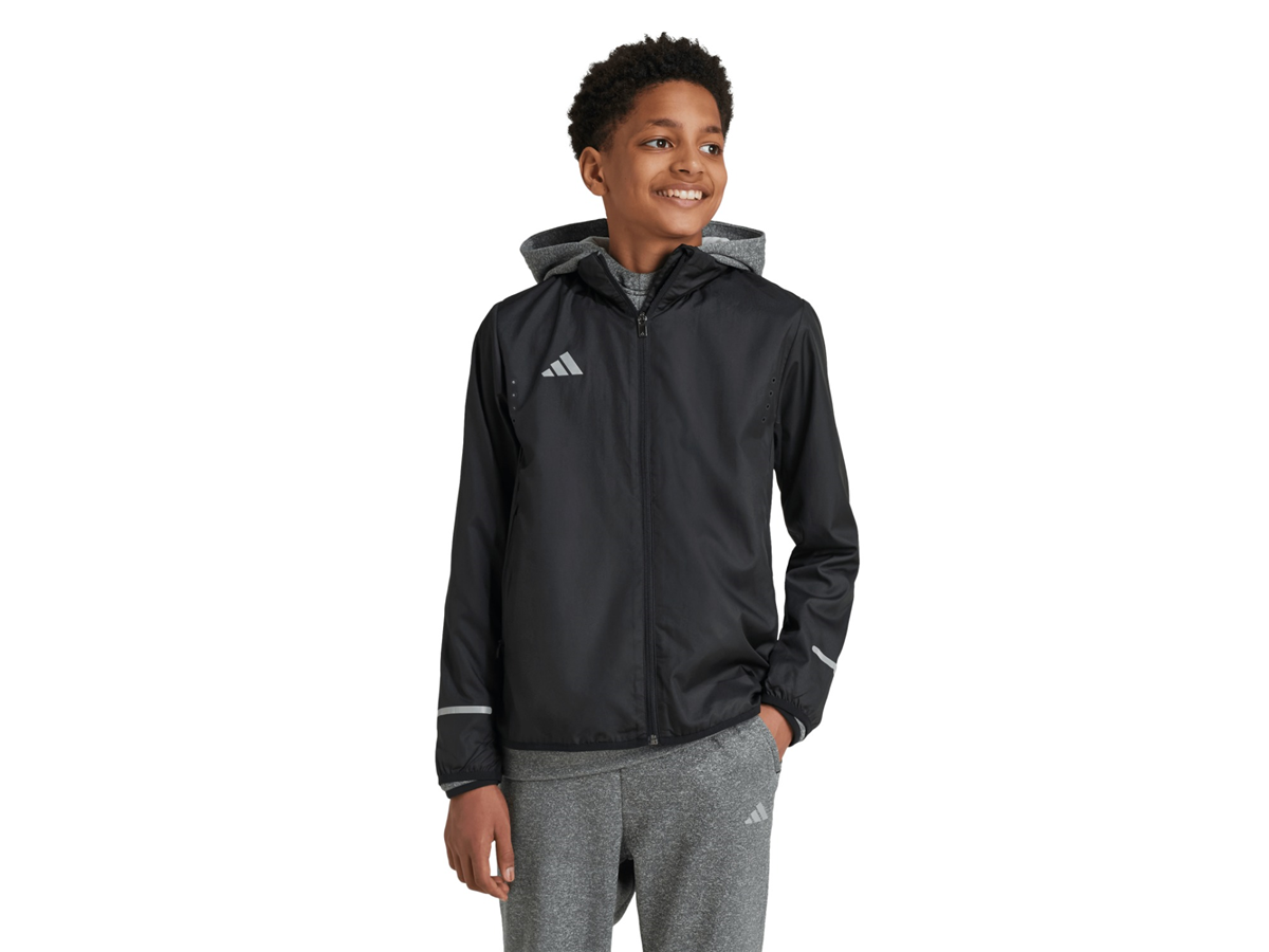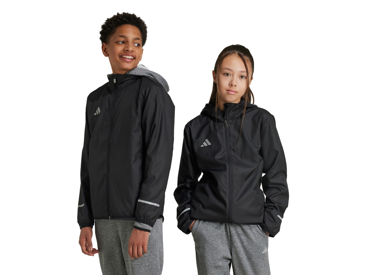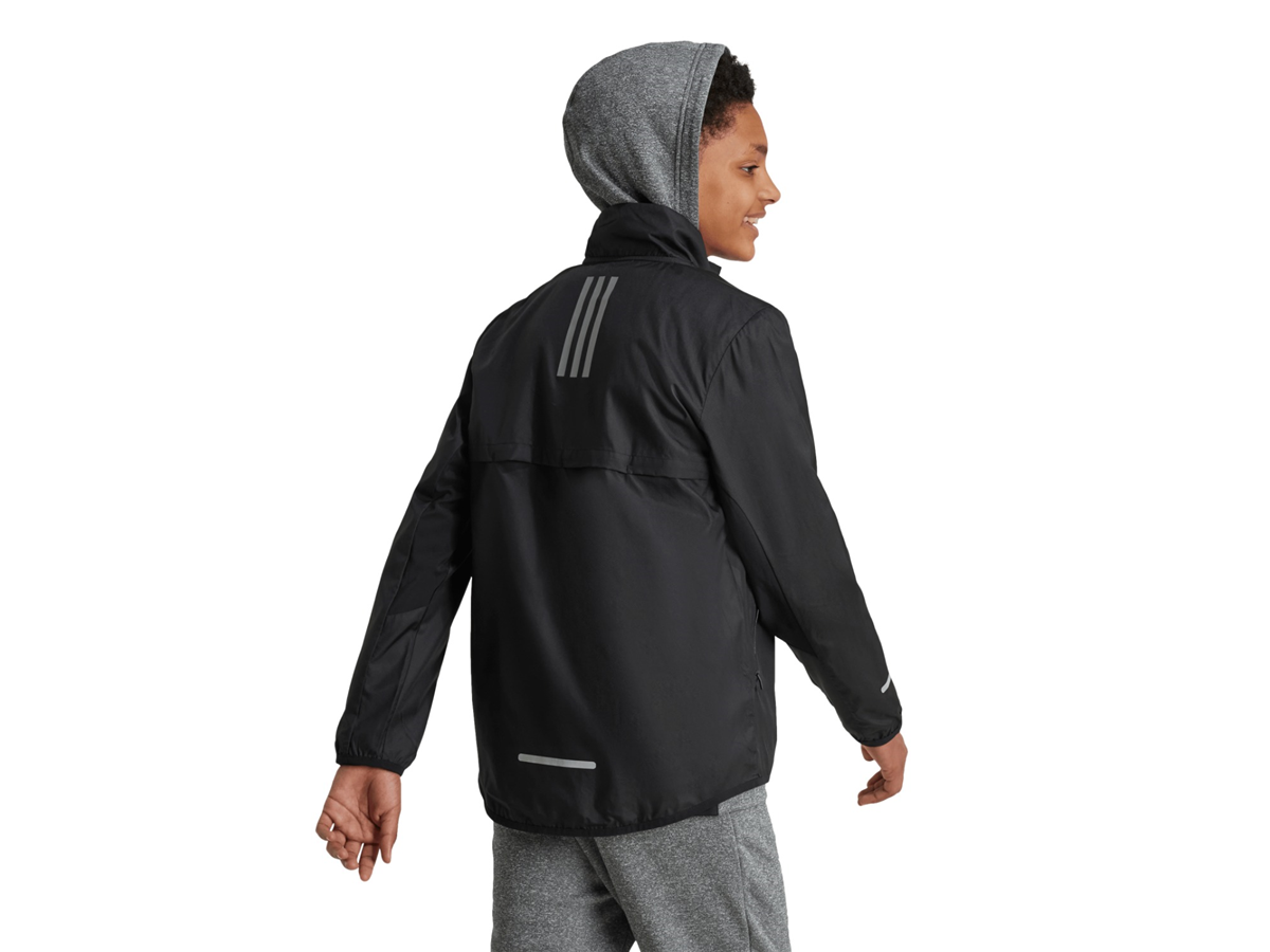 Great for outdoor activities, this juniors' adidas jacket shields against wind and light rain while remaining breathable. The minimal design works well with sports gear or casual outfits, depending on what you're up to. WIND.RDY technology guards against blustery weather while reflective details keep you visible when the daylight fades. This product is made with 100% recycled materials. By reusing materials that have already been created, we help to reduce waste and our reliance on finite resources and reduce the footprint of the products we make.