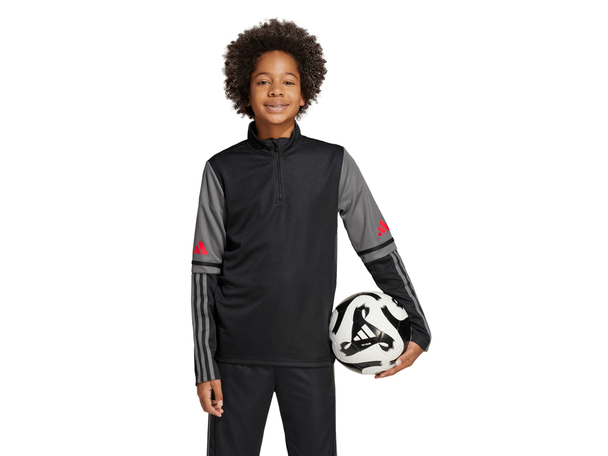 When there's a big game on the horizon, maximise your training time in this long sleeve adidas football top for juniors. Part of a Squadra 25 range built for amateur clubs, it's ideal for when you need to cover up without adding the bulk of a jacket. AEROREADY kicks moisture into touch and that half zip means you can get it on and off in an instant. This product is made with 100% recycled materials. By reusing materials that have already been created, we help to reduce waste and our reliance on finite resources and reduce the footprint of the products we make.