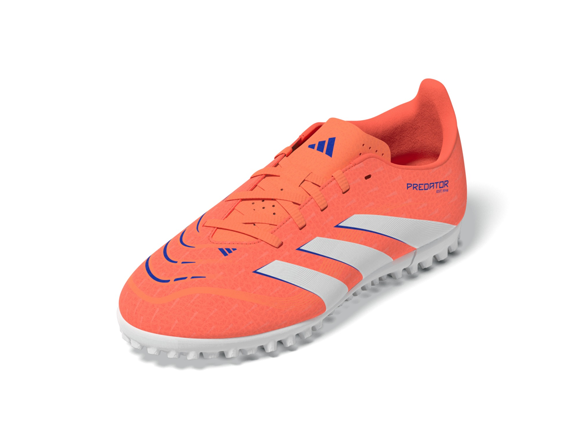 Discover the difference between aiming to score and knowing you will with adidas Predator boots that are crafted for goals. These juniors' Club football boots have a synthetic upper coated with a grippy Strikeprint texture for better ball control. Their lug rubber outsole is designed to get you into prime shooting positions on artificial turf courts.