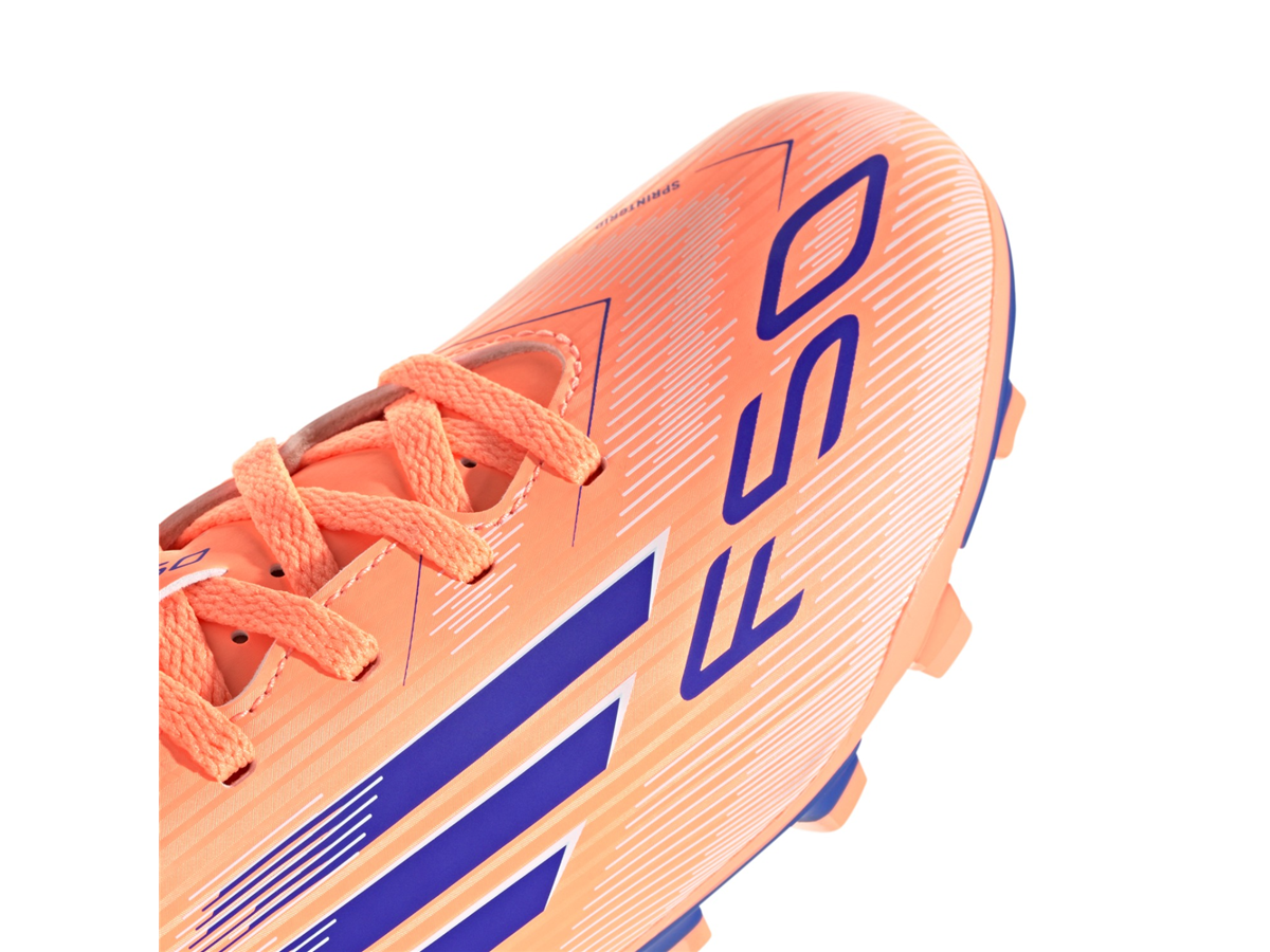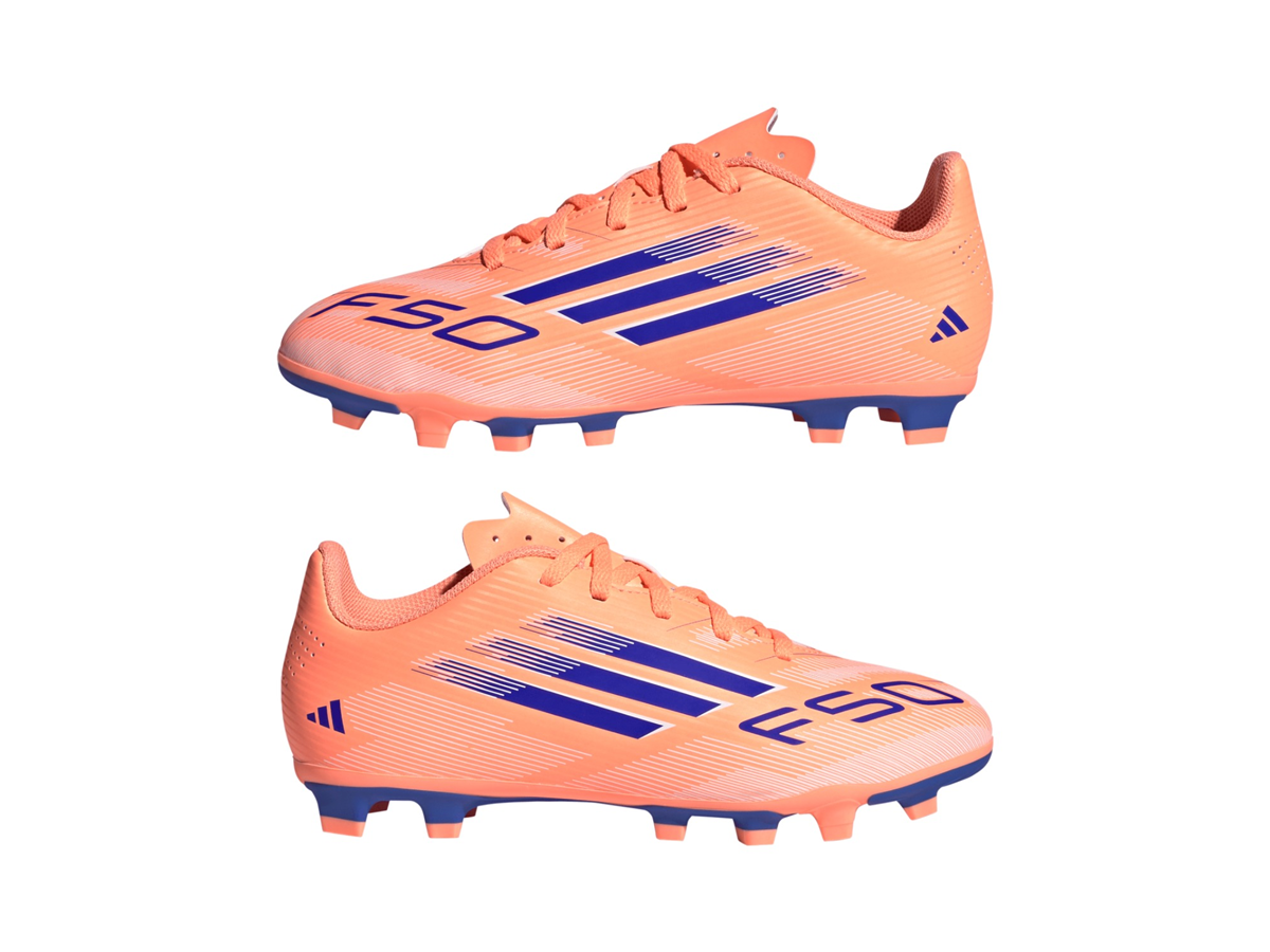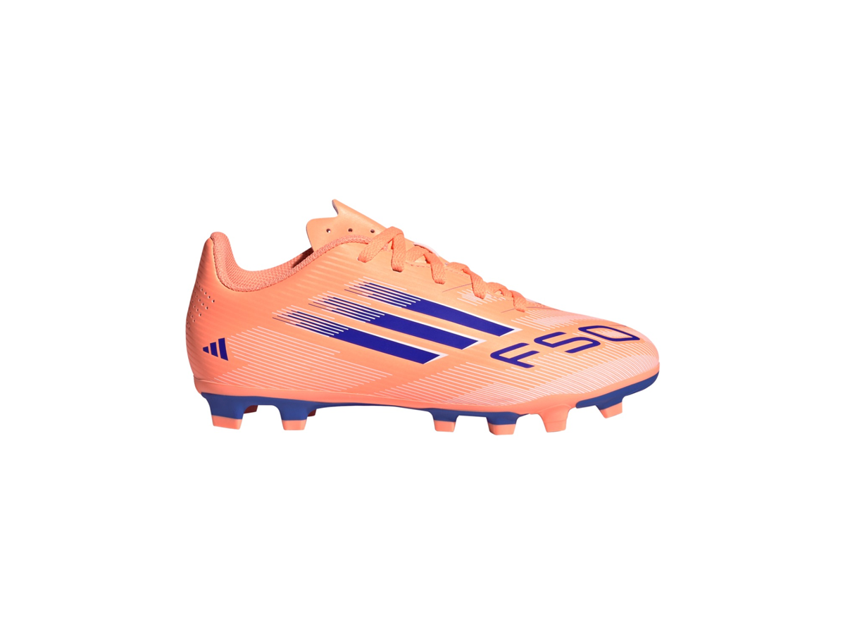 Find your fast to truly express yourself on the field. Feel the rush in adidas F50 boots engineered for speed. These juniors' Club football boots keep you comfortable on the move with a lightweight synthetic upper and perforated tongue. Turn them over and you'll find an outsole that supports speedy play on firm ground and artificial grass pitches.