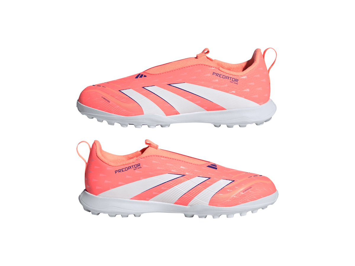 Discover the difference between aiming to score and knowing you will with adidas Predator boots that are crafted for goals. These juniors' League boots have a Hybridfeel upper that incorporates an all-over 3D texture, a laceless knit collar and grippy Strikescale fins to help you manipulate the football during strikes. A lug rubber outsole keeps you stable on artificial turf pitches.