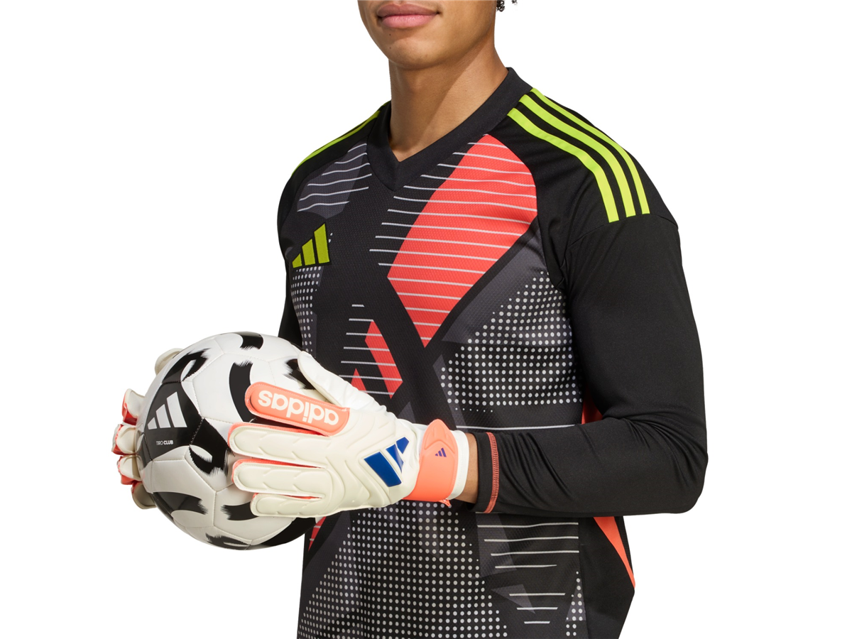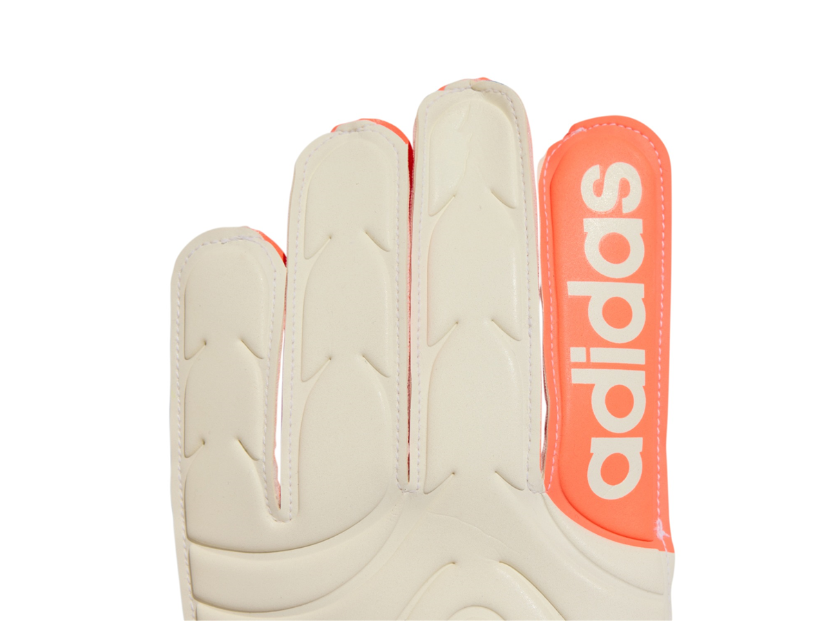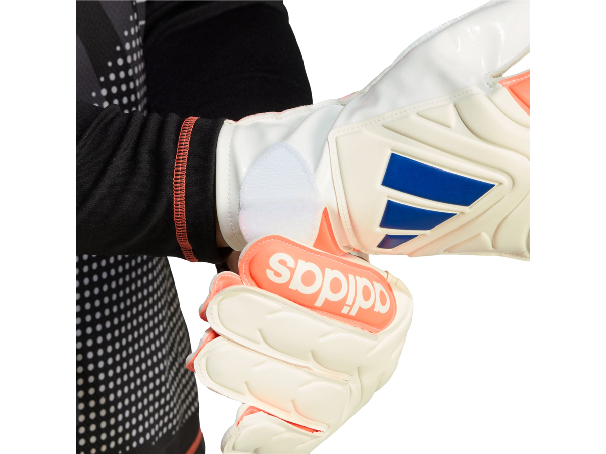 From first whistle to last, stay connected to every game. These adidas Copa Club goalkeeper gloves include a flexible backhand that keeps every movement comfortable and an elastic half-wrap wrist strap that locks you in. The fingers have a positive cut for goalies who like more room. Soft Grip latex in the palm ensures confident handling.