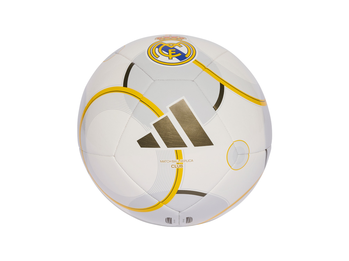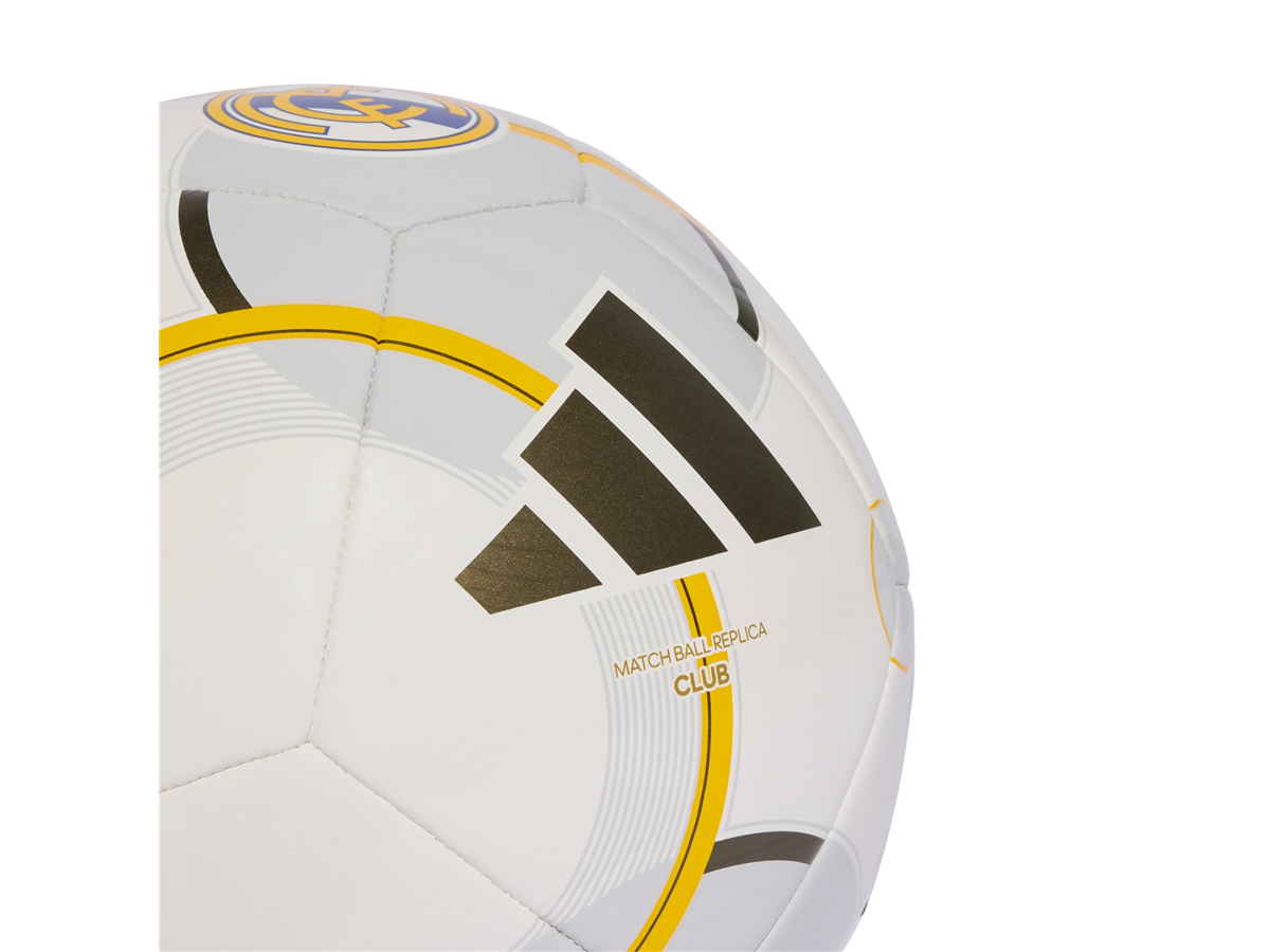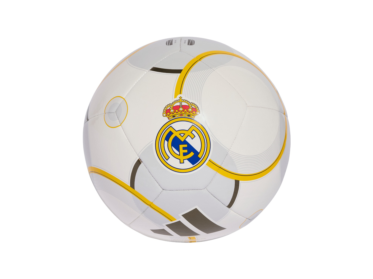 Proudly display your football fandom through every kickabout. This Real Madrid Club ball from adidas displays the team's famous home colours on its durable, machine-stitched cover. The butyl bladder provides excellent air retention so you can keep playing for longer.