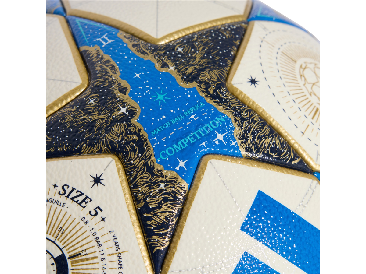Europe's greatest teams meet under the stars to plot their football destinies. Displaying a bold design inspired by the official UCL league stage ball, this adidas Competition ball has a seamless construction and resilient butyl bladder for stellar performances on the field. Graphics inspired by astronomical clocks and signs of the zodiac mean there's never a bad time to pull this beauty out of your kit bag.