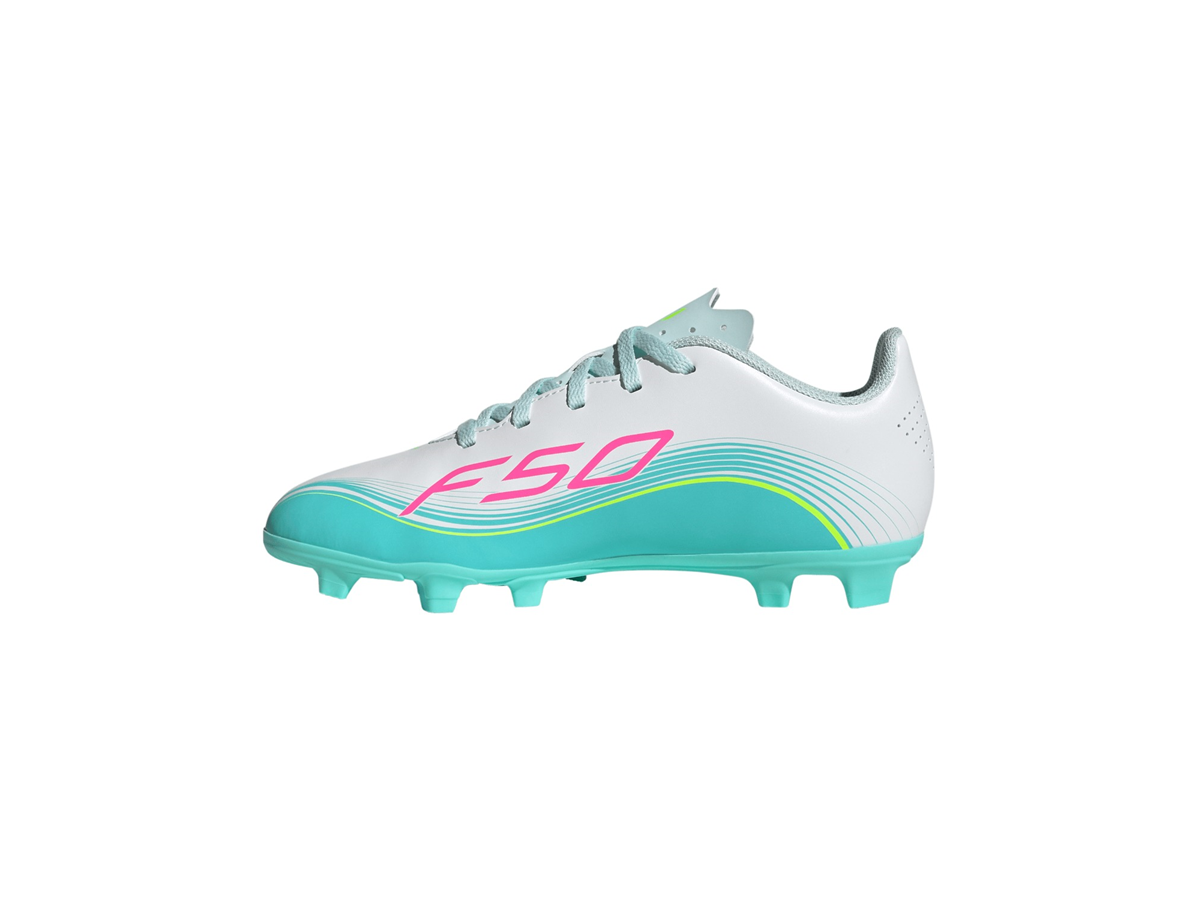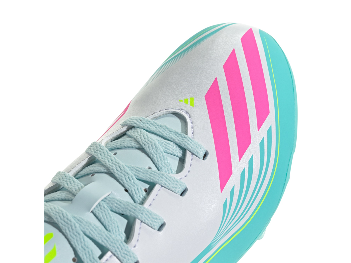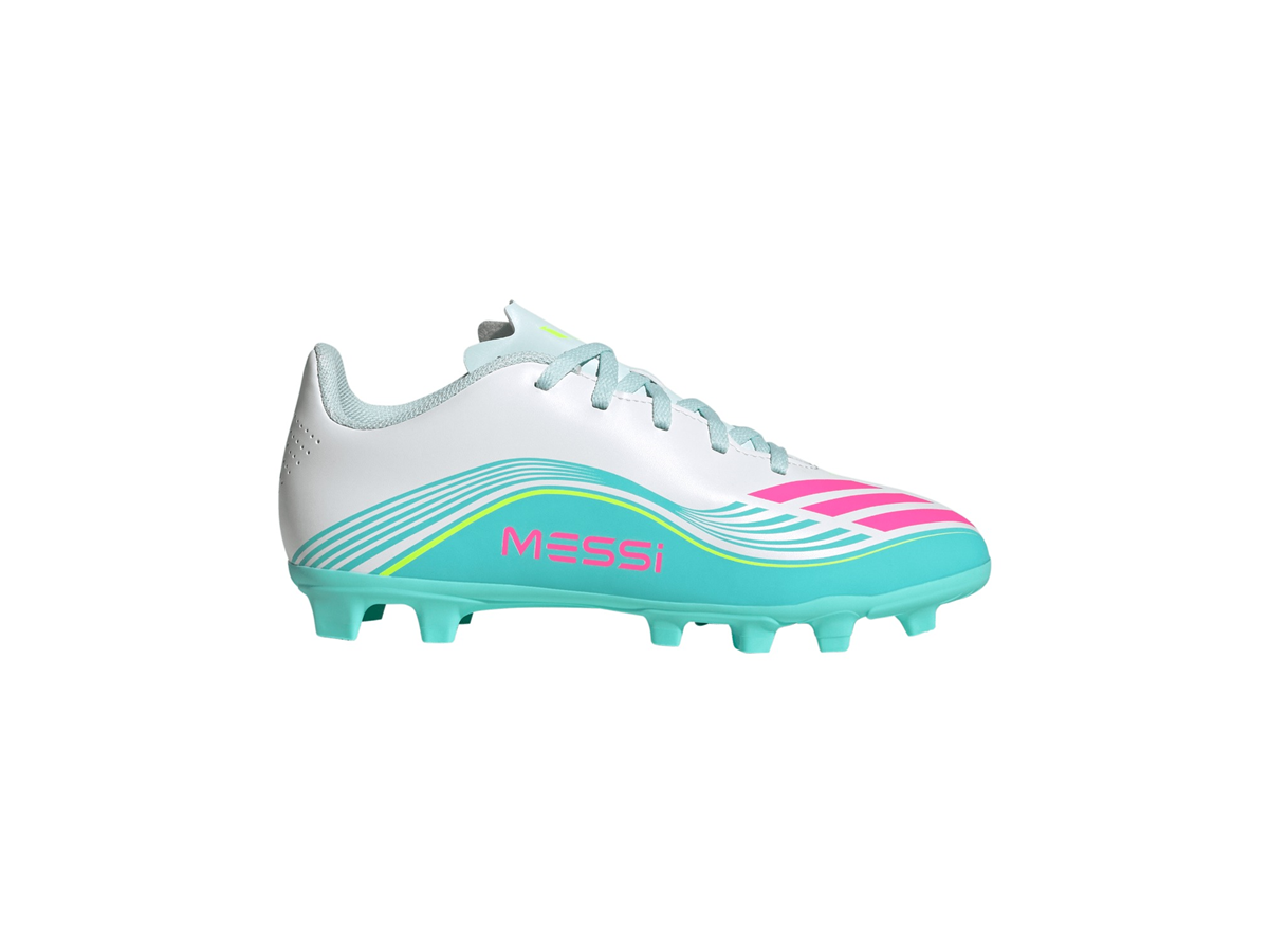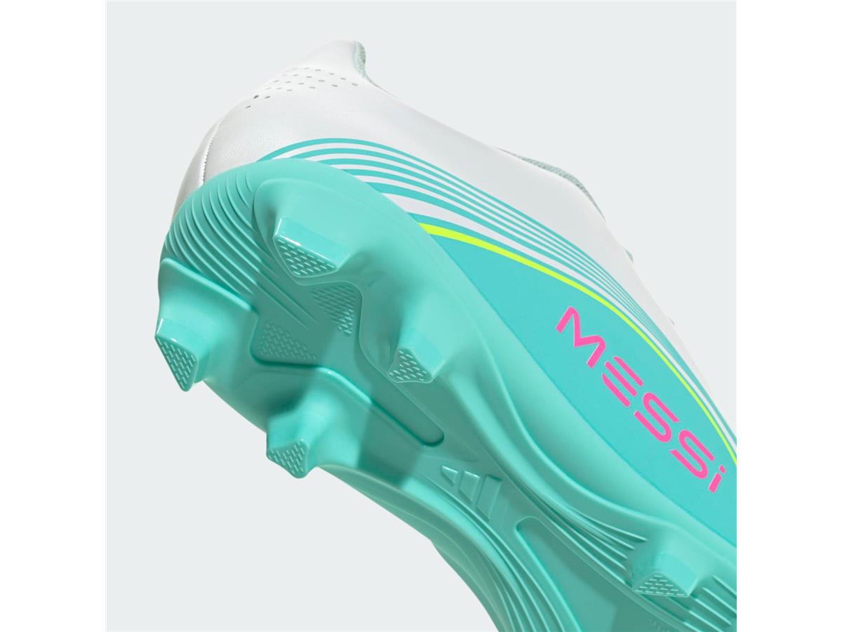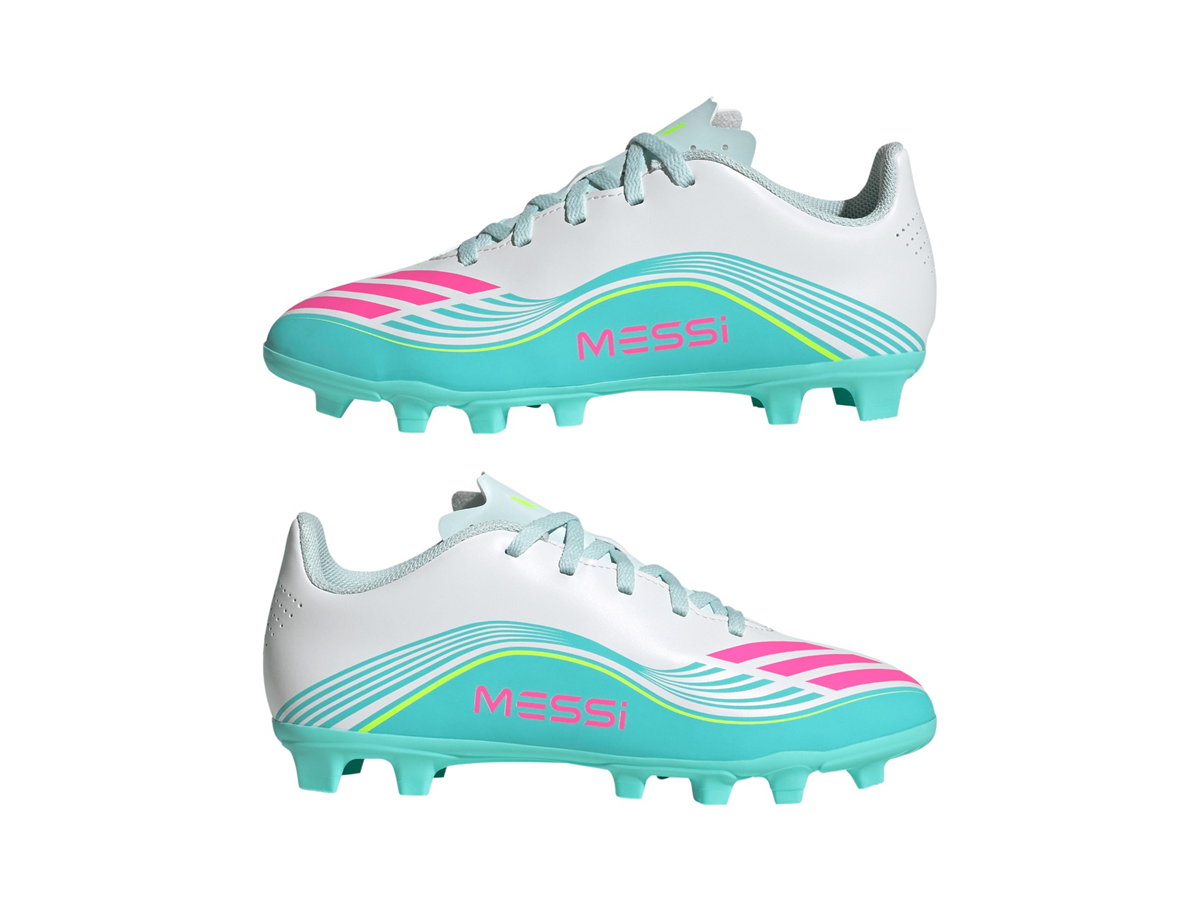 For young football fans who dream of emulating their idol, the F50 Messi Club Firm Ground / Multi Ground Football Boots are tailored to Messi’s preferences in fit and design. With a soft, lightweight, feel, these boots unlock game-changing speed on the pitch. The lightweight upper offers support and cushioning, while the synthetic floating tongue includes punch holes for breathability. The FG/MG tooling provides reliable traction on both natural grass pitches and artificial grass. With versatile grip and adjustable laces for a secure fit, young athletes can wear them with confidence. With iconic branding, including the Messi logo on the heel and F50 logo on the tongue, these boots are an authentic tribute to the legendary player.