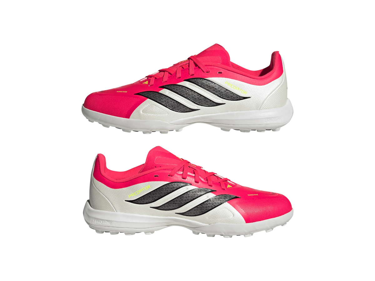 The Predator League Turf Football Boots are designed to help young players unlock their potential on the pitch. Featuring Nanostrike technology, the mesh upper is built for softness and lightness to support striking precision. The laced floating tongue makes these boots easy to step into and adjust. adidas’ commitment to performance is evident in the Powerspine technology to support strong shots at goal. The rubber outsole offers grip and stability on turf pitches. Whether it’s a match or a training session, these boots are ready to support your child on the pitch.