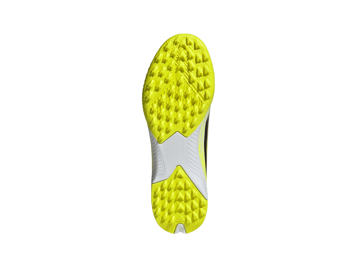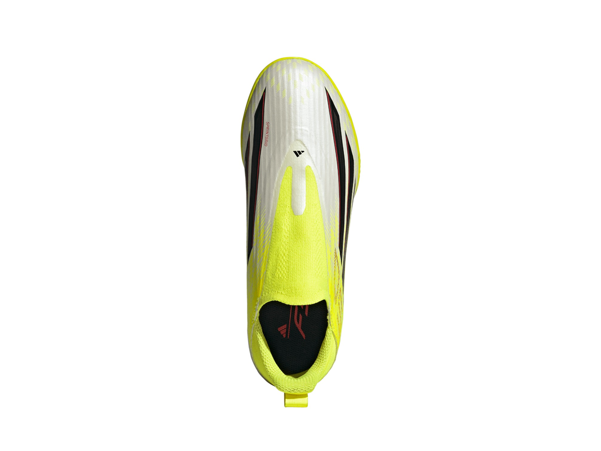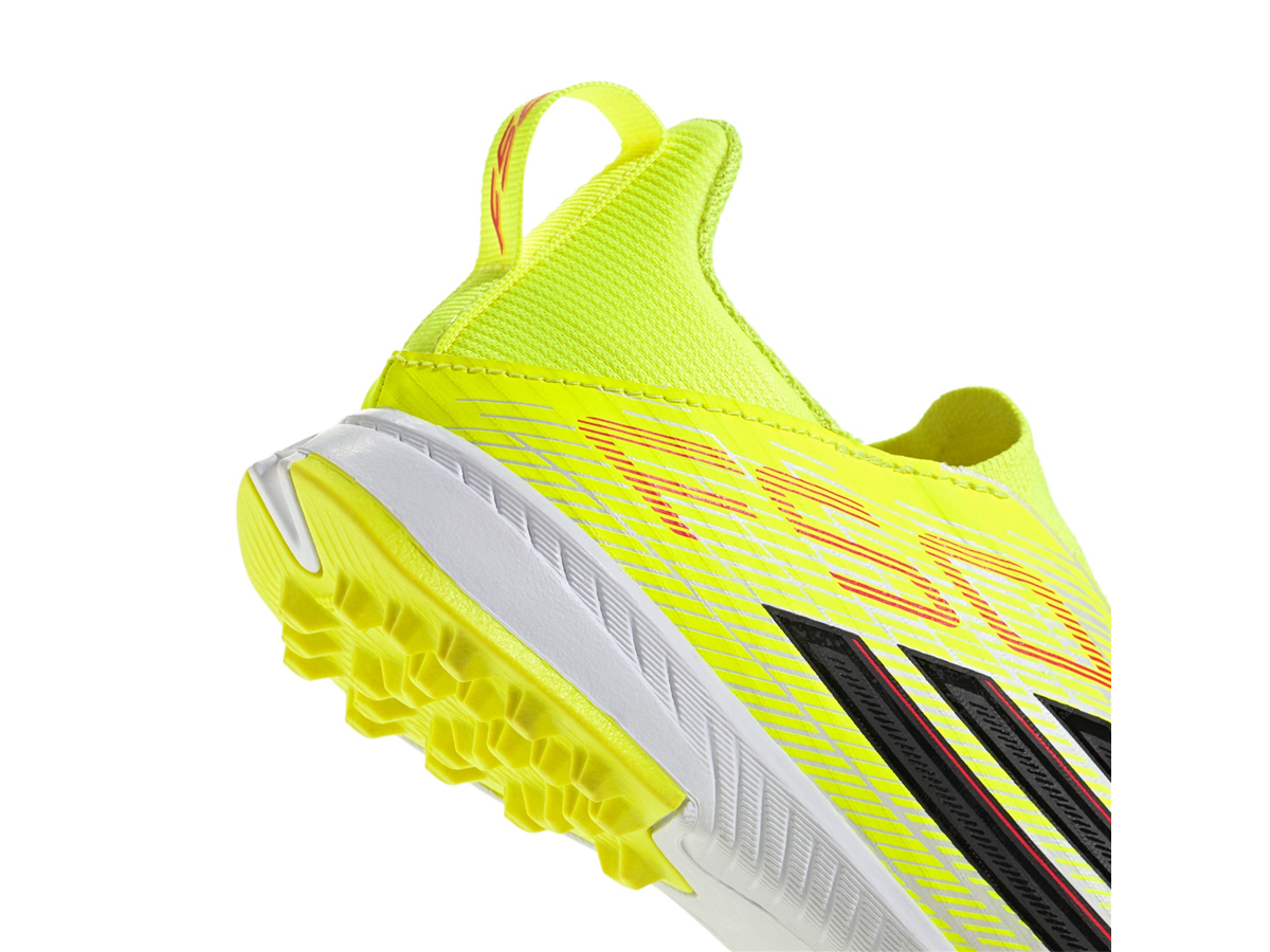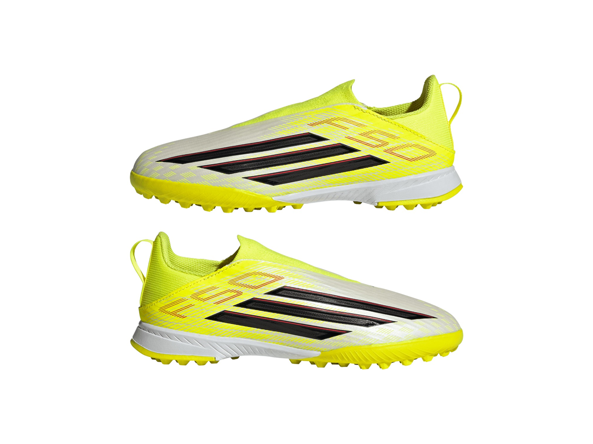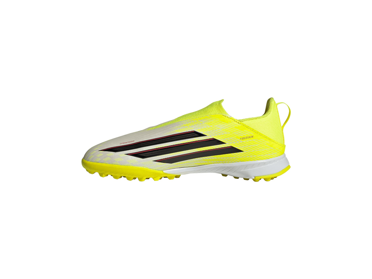 Champion football with the F50 League Laceless Turf Football Shoes Kids. Designed for young athletes who are ready to make their mark, our boots combine cutting-edge technology with sleek design. The Fiberskin upper offers a soft feel and controlled ball contact for precise and powerful kicks, while the Sprintplate 360 outsole helps your child to pick up the pace. The laceless collar provides a snug fit, for comfort during intense matches. Whether it's playtime or team practice, our shoes are crafted to keep up with your young player. With a turf outsole designed for artificial surfaces, these shoes are suitable for school sports and weekend games. Unlock their potential with adidas - and let them run.