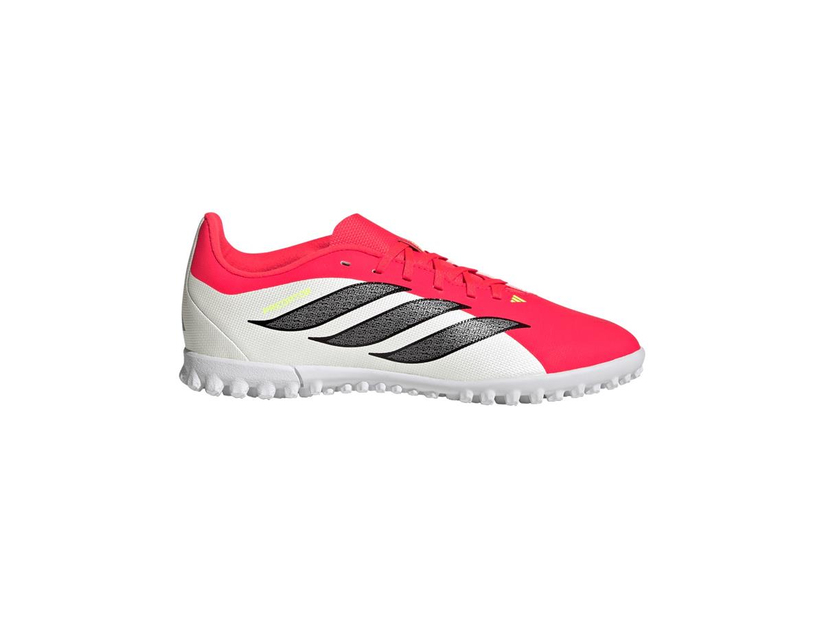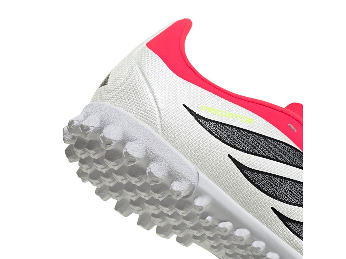 The Predator Club Turf Football Shoes are crafted for young football enthusiasts ready to make their mark on the pitch. These shoes are designed to provide comfort and control, allowing kids to focus on their match. With a soft synthetic upper, these shoes offer high comfort and added texture for extra grip and precision. The lightweight synthetic tongue features punch holes so the airflow helps keep feet cool. These shoes have a laced floating tongue design for easy step-in and adjustability, making them a top pick for growing feet. They are built to support young players as they develop their skills and passion for the game.