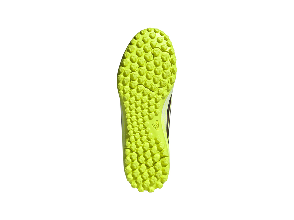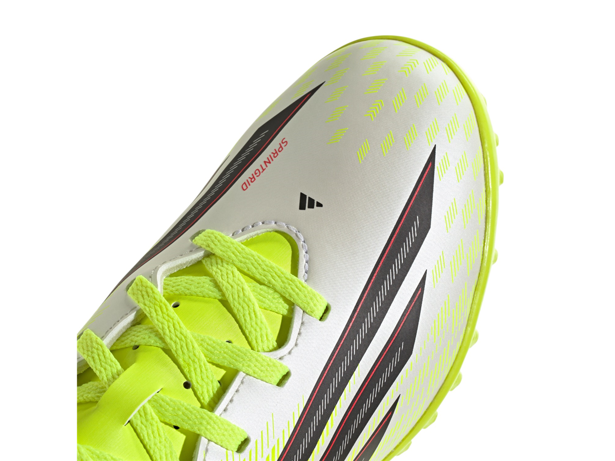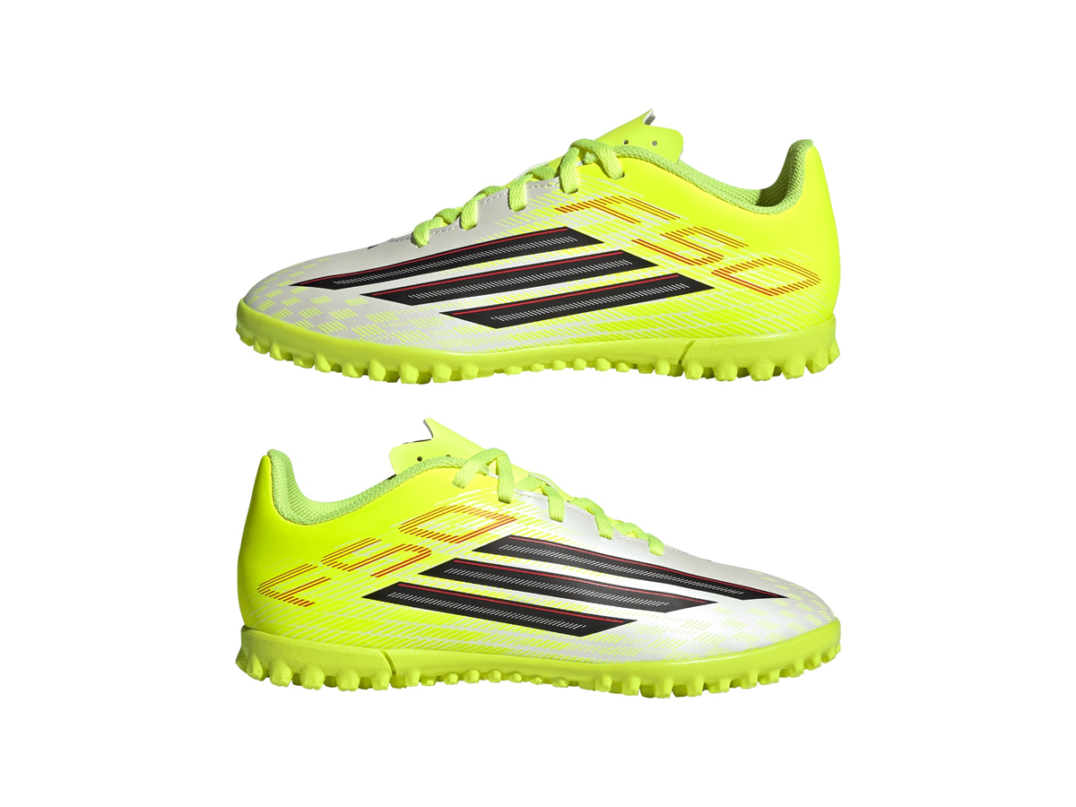 F50 Club Turf Football Shoes Kids are crafted for young players looking for speed and precision on the pitch. Designed with a lightweight synthetic upper, these shoes balance support and cushioning, offering a comfortable feel. The synthetic floating tongue with punch holes enhances breathability, whilst the textured outsole is specifically developed for turf pitches, providing traction and stability on artificial surfaces. With a regular fit and lace closure, these shoes offer a secure and adjustable fit, allowing kids to focus on their game. The F50 logo and iconic 3-Stripes branding add a touch of adidas style, making these shoes a standout choice for your young football enthusiast.