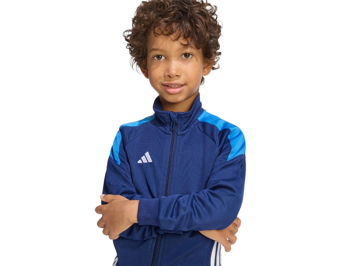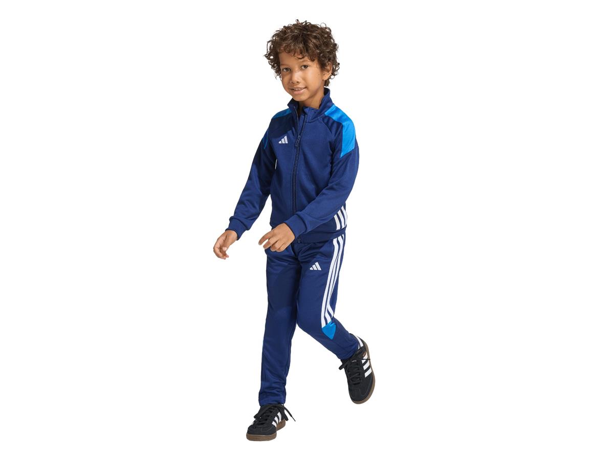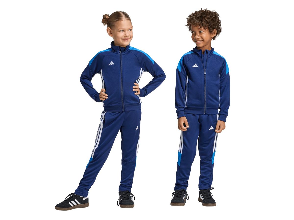 The Tiro 26 Essentials tracksuit channels the energy of football into a set made for active kids. Balancing comfort and confidence, it brings the spirit of the game into their everyday world — from the classroom to weekend adventures. Made from smooth doubleknit fabric, the set delivers durability and an easy feel against the skin. The slim-fit top and regular-fit bottoms give a secure, modern shape that supports movement and self-expression. Finished with laid-on 3-Stripes, bold colour-block inserts and subtle adidas branding, it reflects authentic sport heritage through a fresh, wearable design that’s built for play and made to move with them.