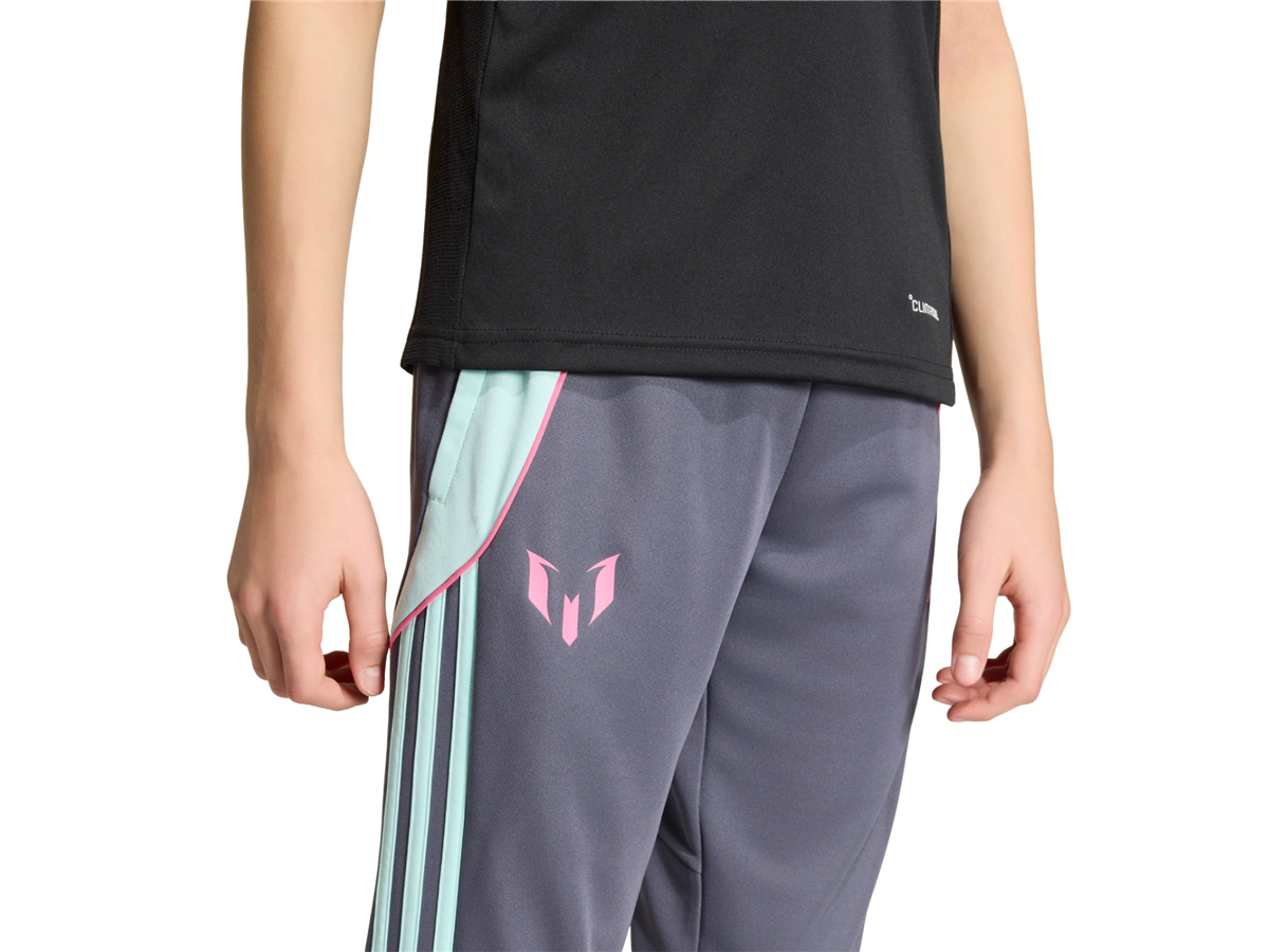Training pitch style for fans of football greatness. Showing off Lionel Messi's iconic logo, these juniors' track pants from adidas challenge you to hit your goals. Zip pockets provide secure storage for essentials as you head out to the field or relax after a session.