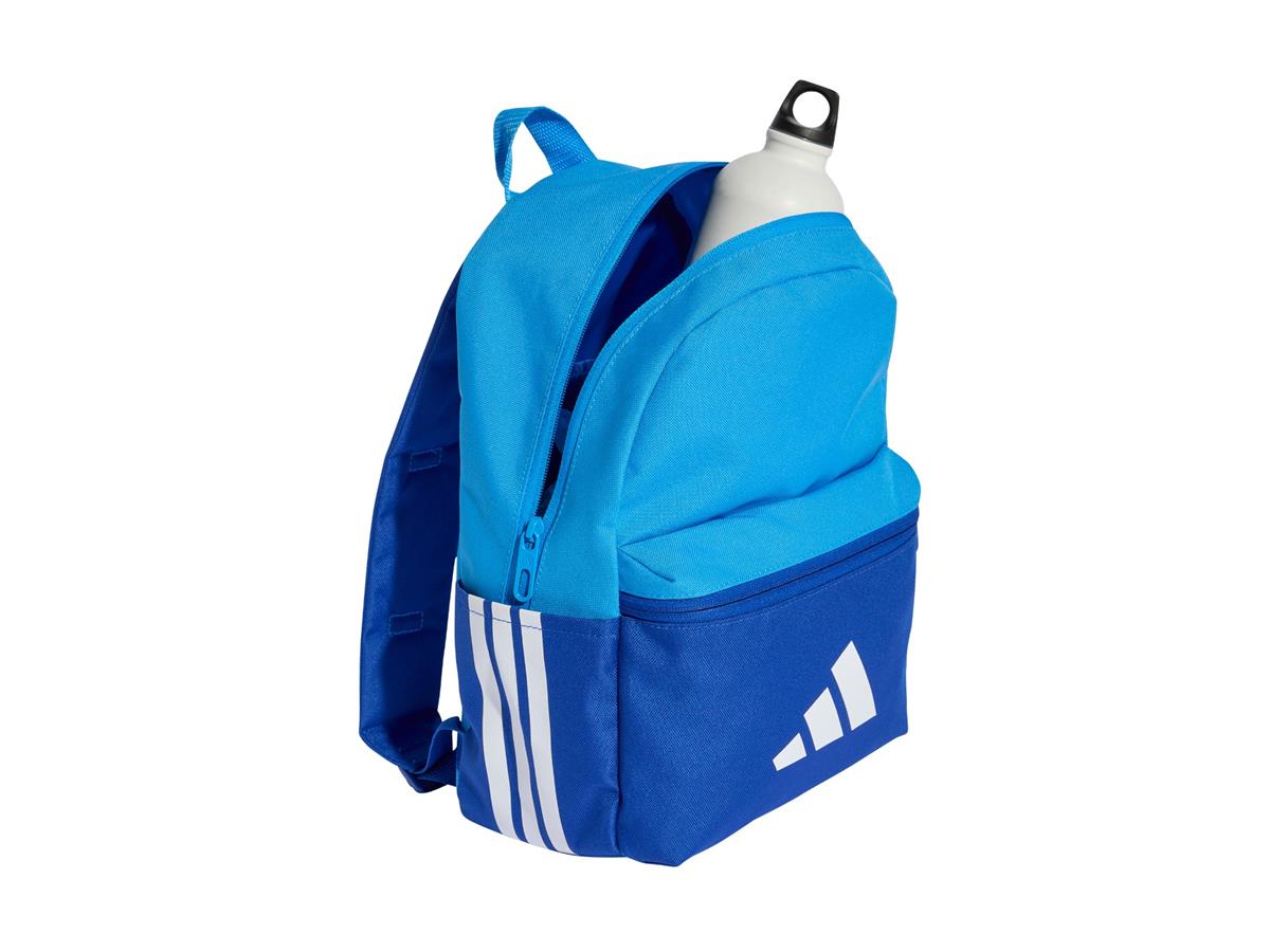 Help them show their adidas pride. Perfect for your little one's first day of school or for everyday adventures, this kids' backpack is designed just for them. Its smaller size is easy for kids to carry, and the adjustable straps let you customise the fit. This product is made with at least 50% recycled materials. By reusing materials that have already been created, we help to reduce waste and our reliance on finite resources and reduce the footprint of the products we make.