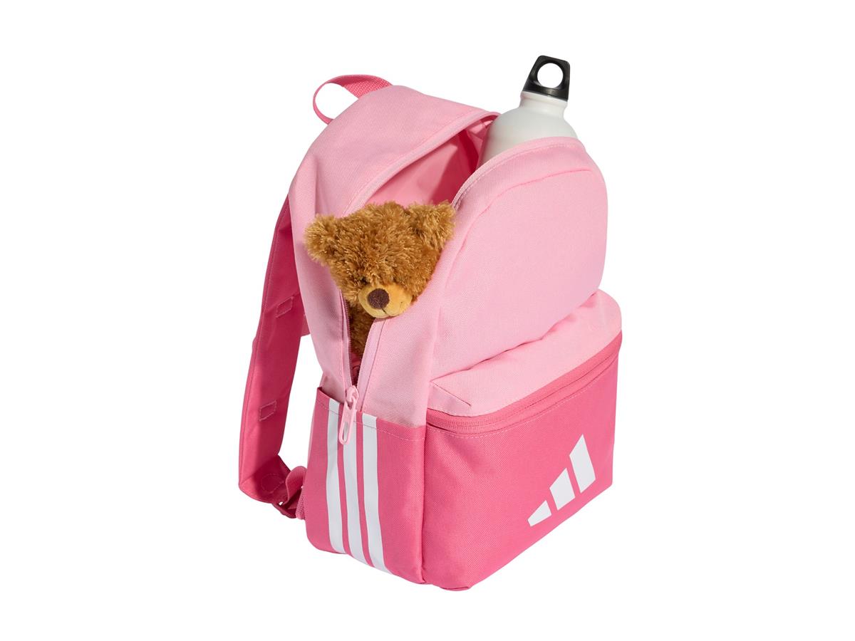 Help them show their adidas pride. Perfect for your little one's first day of school or for everyday adventures, this kids' backpack is designed just for them. Its smaller size is easy for kids to carry, and the adjustable straps let you customise the fit. This product is made with at least 50% recycled materials. By reusing materials that have already been created, we help to reduce waste and our reliance on finite resources and reduce the footprint of the products we make.