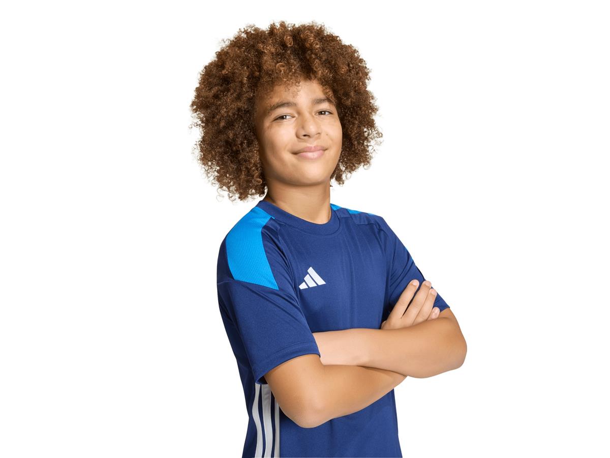 Watch them step out with confidence in the Tiro 26 Essentials Jersey. Designed for young football enthusiasts, this jersey combines style and performance seamlessly. Inspired by the vibrant culture of football, it features the iconic 3-Stripes running down the sides, bringing a touch of adidas heritage to their moves. The crew neck offers a comfortable fit, while interlock fabric provides durability for active wear. Cool. Dry. Ready. Climacool technology wicks and disperses sweat for a cool, dry, and distraction-free performance. Fast-dry fibres offer a fresh skin feel, so youngsters can feel confident, even during intense play. With a football-inspired design, this jersey is built for both sport and play, making it a versatile addition to a young athlete's wardrobe. Whether it's match day or a casual kickabout, this jersey is ready to support their passion for the game.