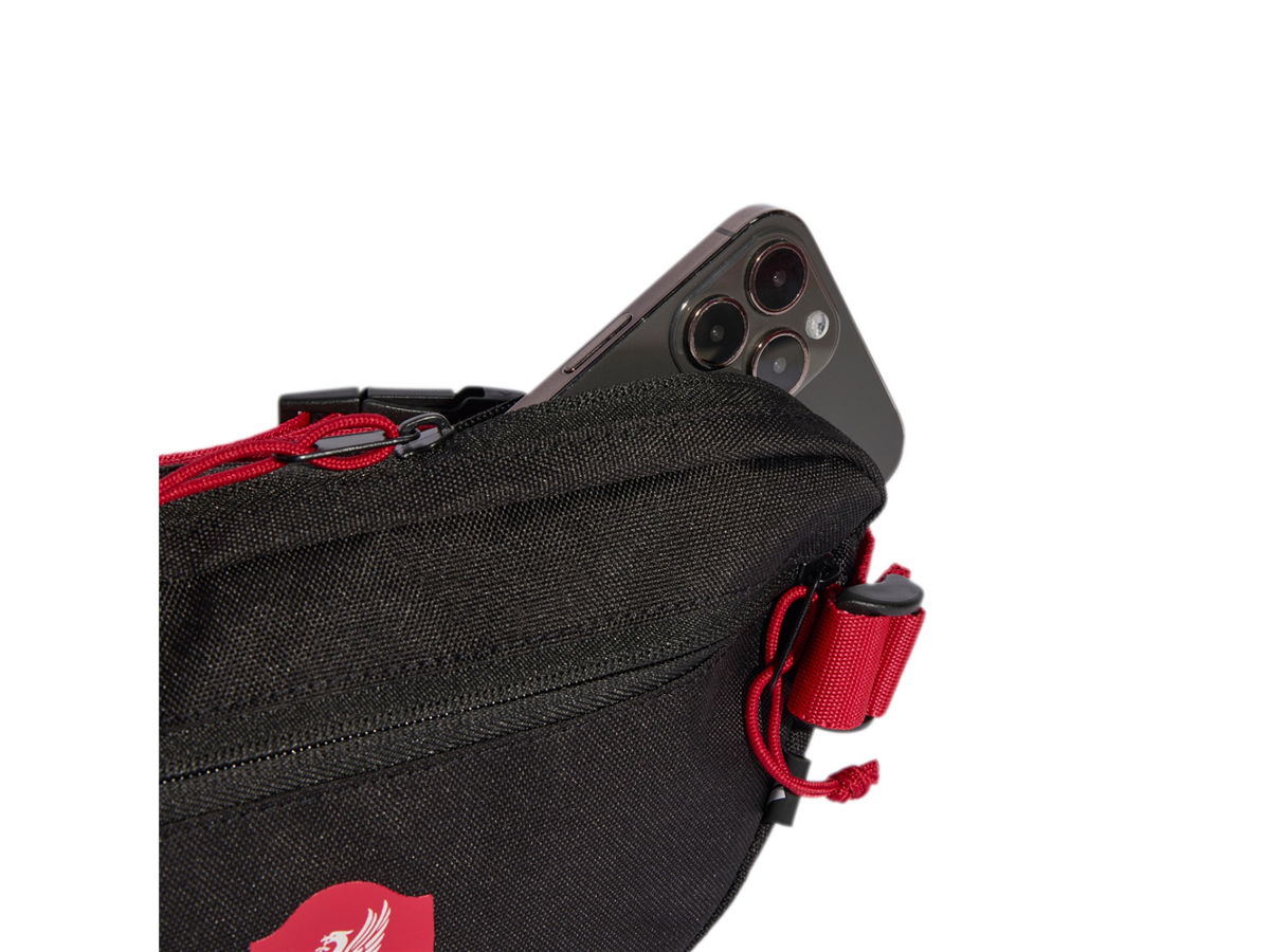 Cheer on Liverpool FC while keeping your essentials close at hand. This adidas waist bag lets you rep your team in style, whether you're weaving through the crowds at Anfield on match day or heading out on your holidays. An adjustable strap provides a comfortable fit and a team crest adds a football finish true fans will treasure.
