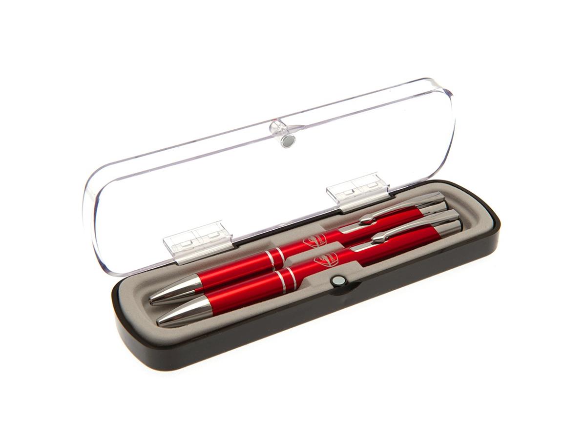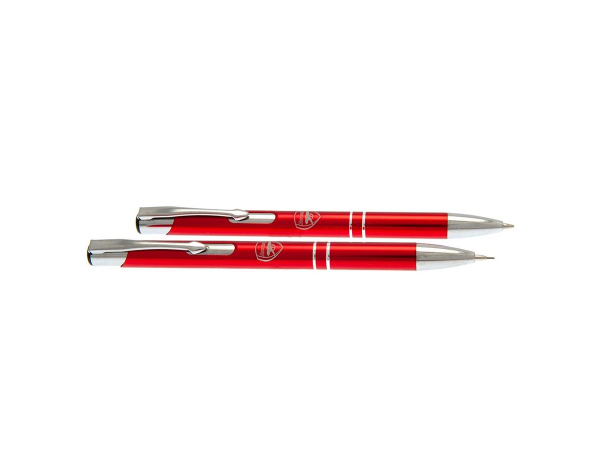 Red pen and pencil gift set featuring a silver Arsenal crest