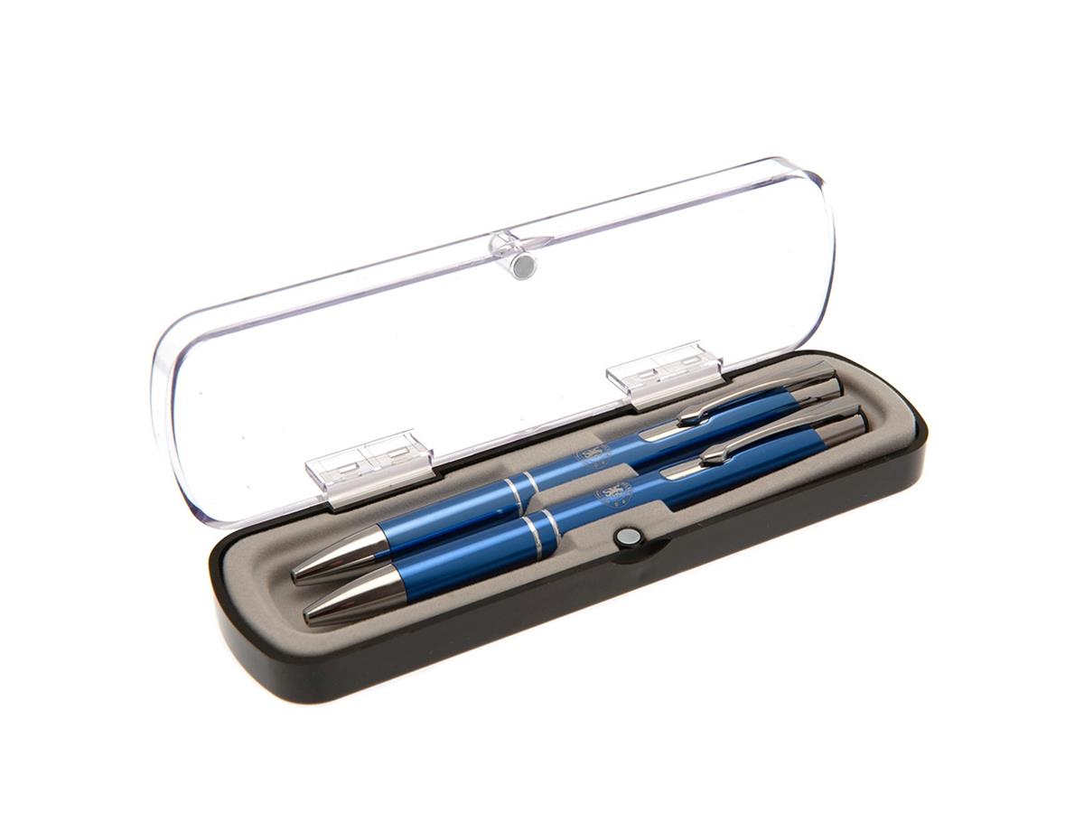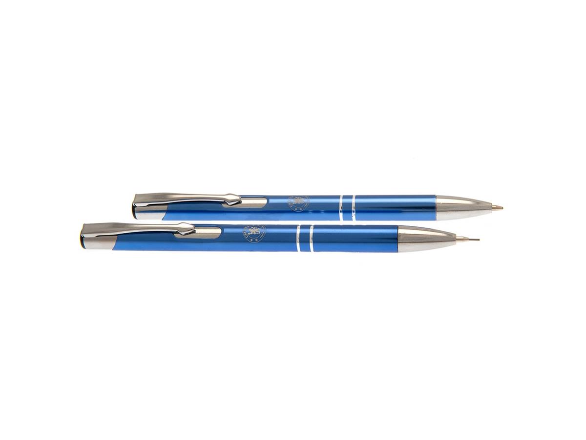 Blue pen and pencil gift set featuring a silver Chelsea crest