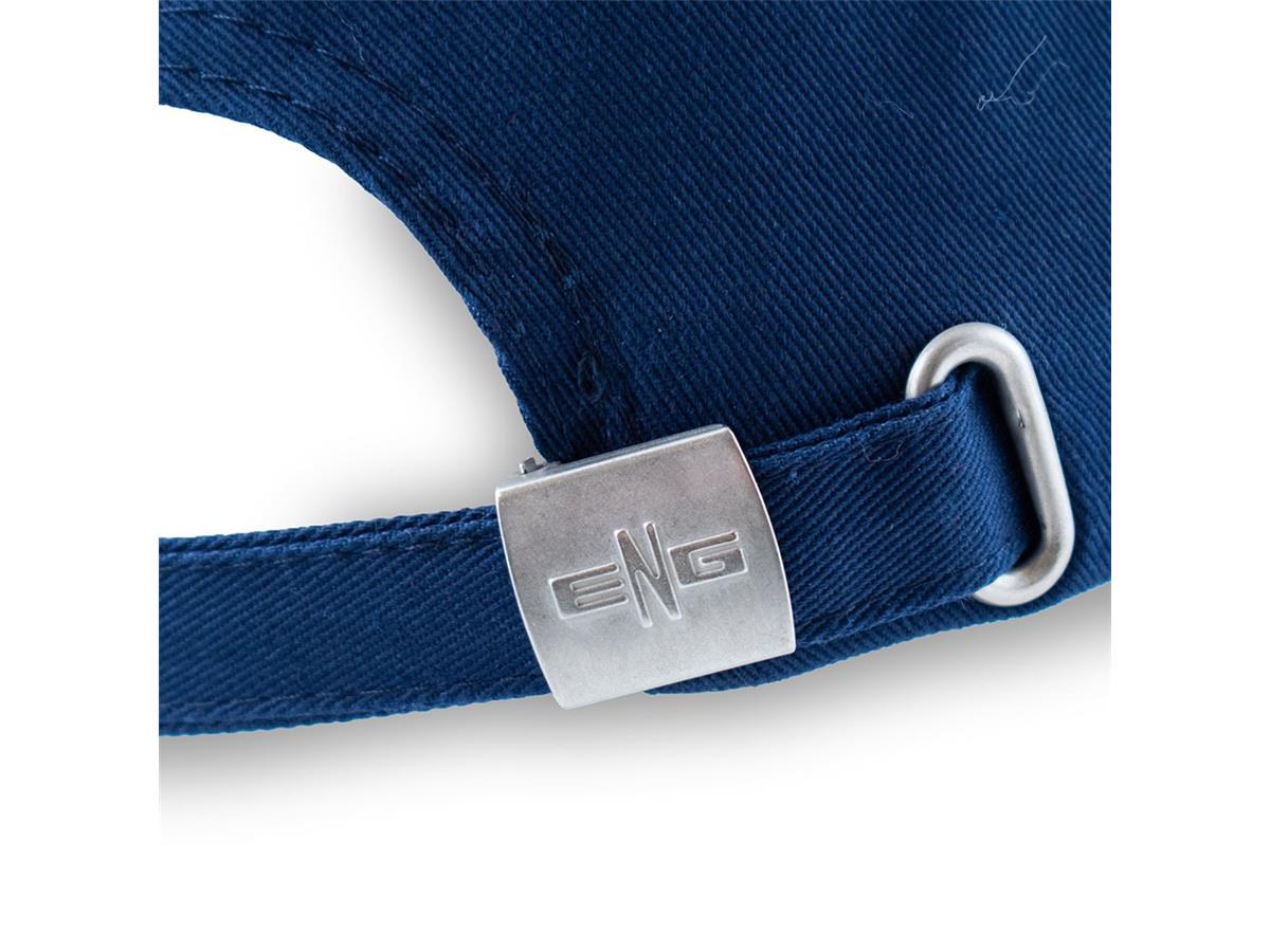 With an ENG stamped metal buckle size adjuster 55-61cm