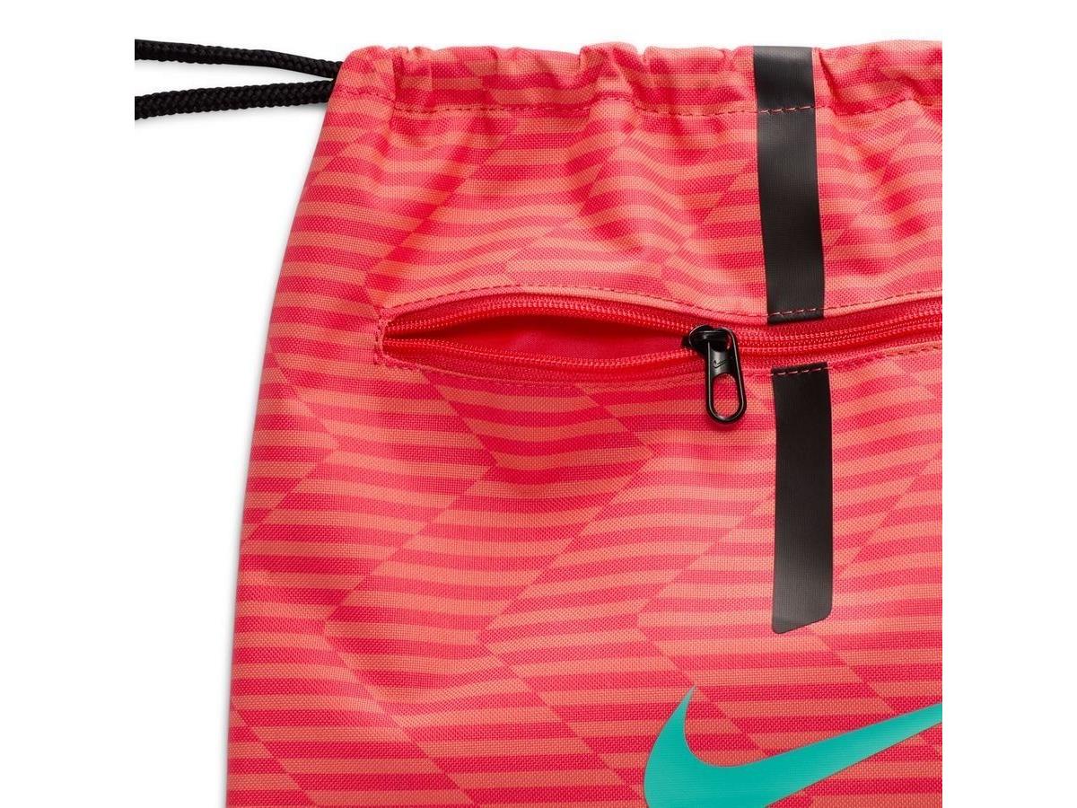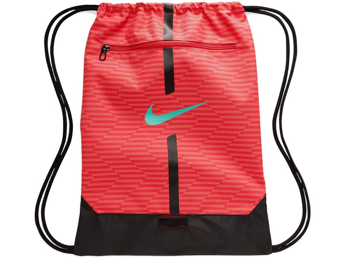 Nike Academy Gym Bag (18 L)PRACTICAL STORAGE FOR YOUR GEAR.The Nike Academy gym bag is a lightweight model with a drawstring closure, allowing you to quickly access your items while on the move. An external pocket lets you store your small items separately. This product is made with at least 50% recycled polyester fibres.Lightweight and durable fabric.Main compartment with drawstring for easy access to your belongings.Mesh at the bottom for better ventilation.Front zip pocket to keep your items within reach. More Details 51 cm (H) x 36 cm (W) x 5 cm (D)18 L100% polyester