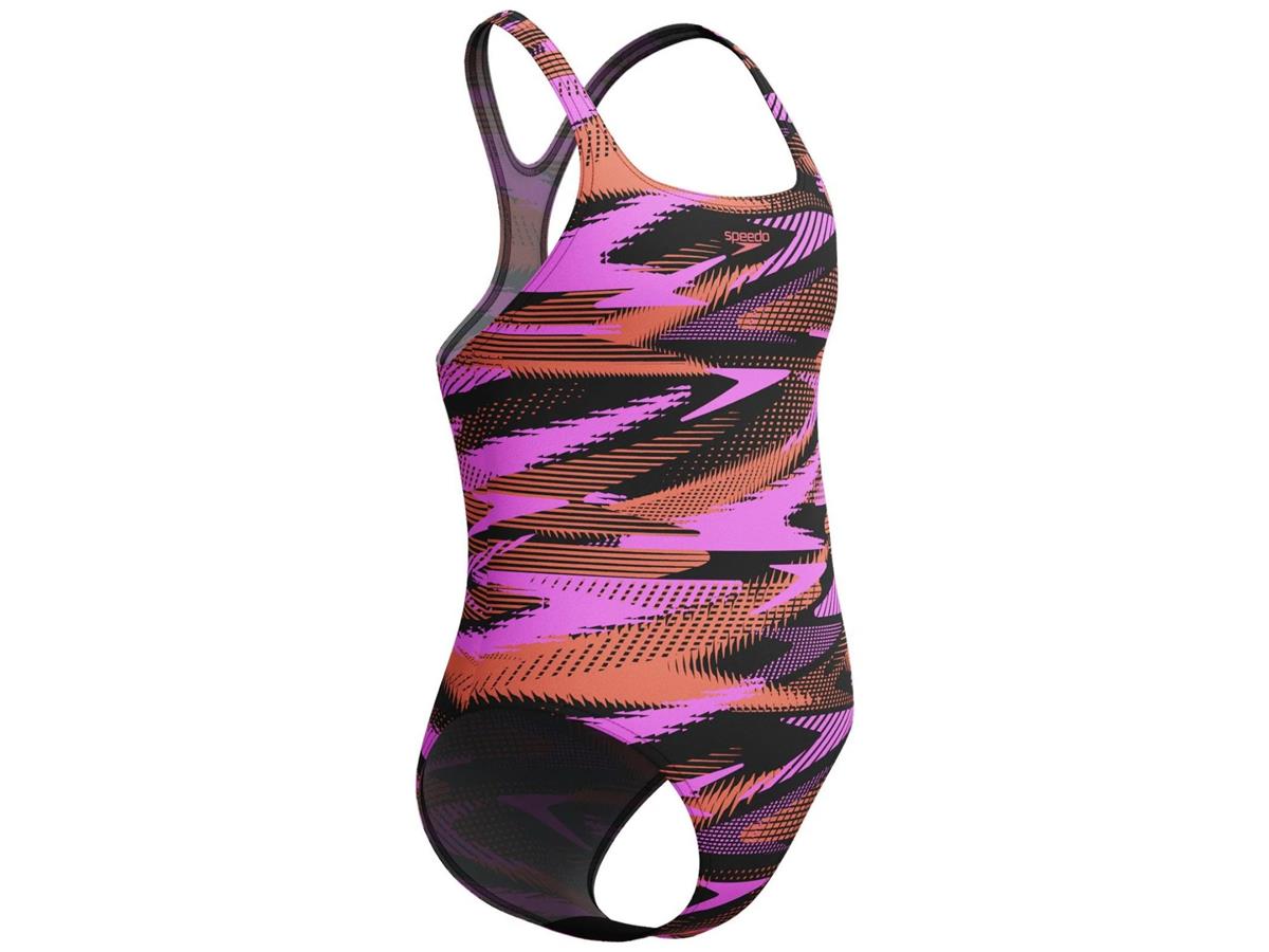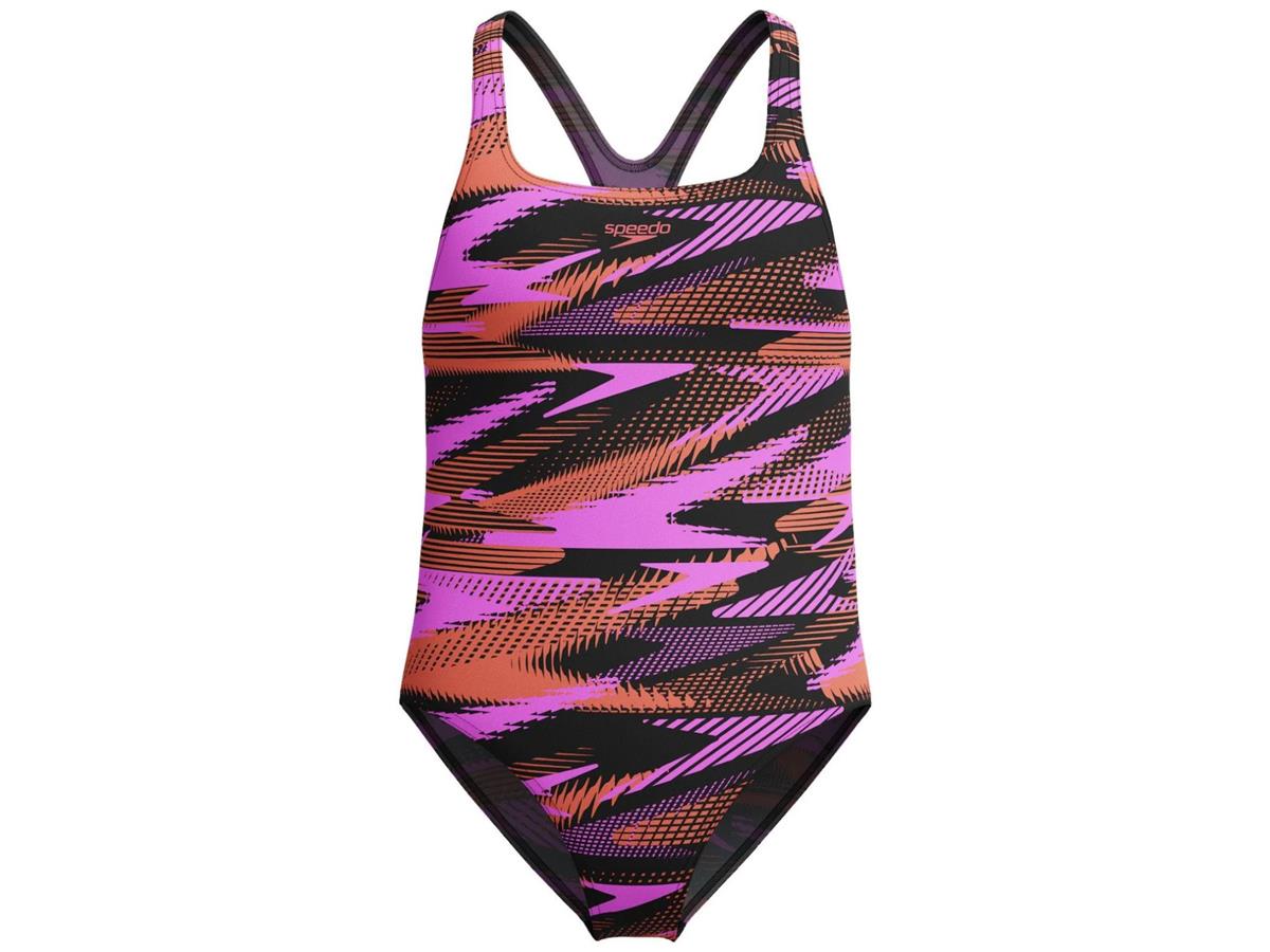 A fresh iteration of our HyperBoom print has landed! Glitchy graphics and Boom logos collide in this sporty junior Medalist swimsuit, designed to deliver extra get-up-and-go in training. The classic medalist design aids shoulder movement and flexibility. Cut from pilling-resistant Enduraflex fabric for better shape retention and higher chlorine resistance.