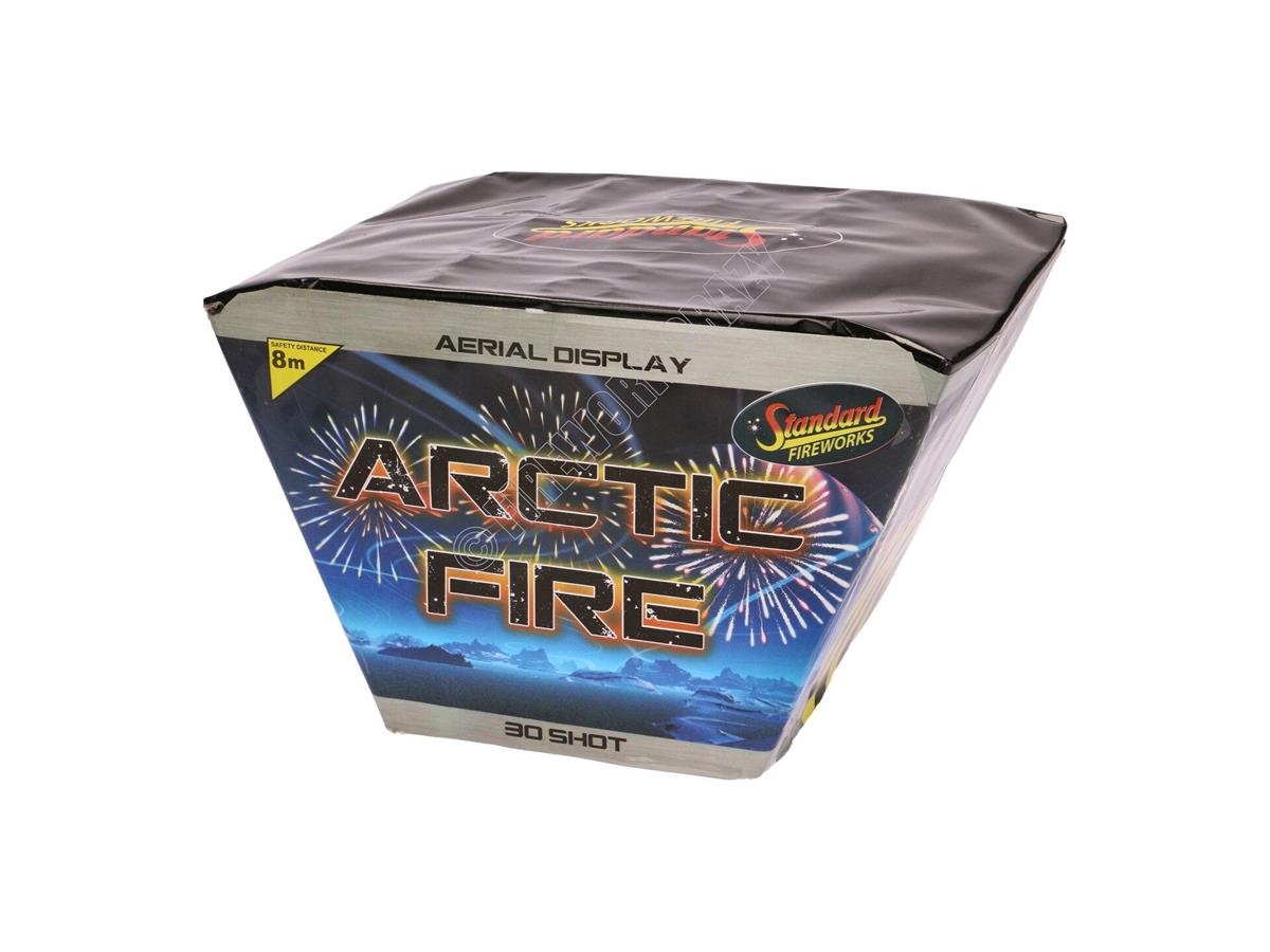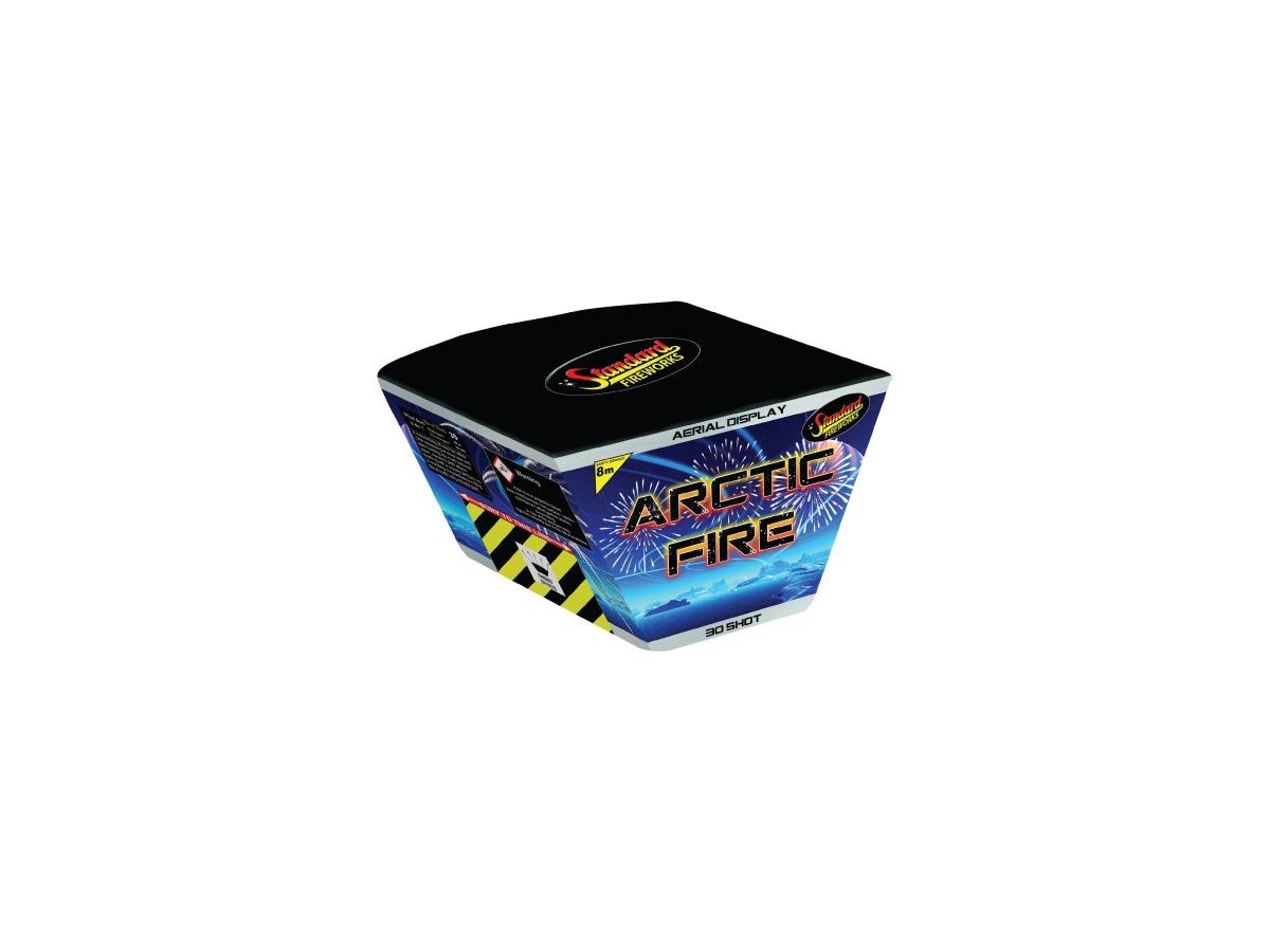 Arctic Fire is a mesmerising 30 shot fan effect cake from Standard Fireworks.